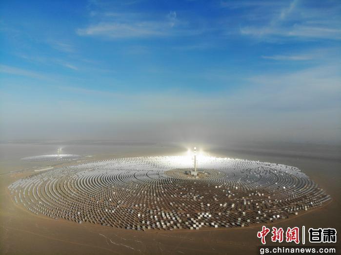 圖為甘肅敦煌建成的中國首個(gè)百兆瓦級(jí)熔鹽塔式光熱電站。 (資料圖)楊艷敏 攝