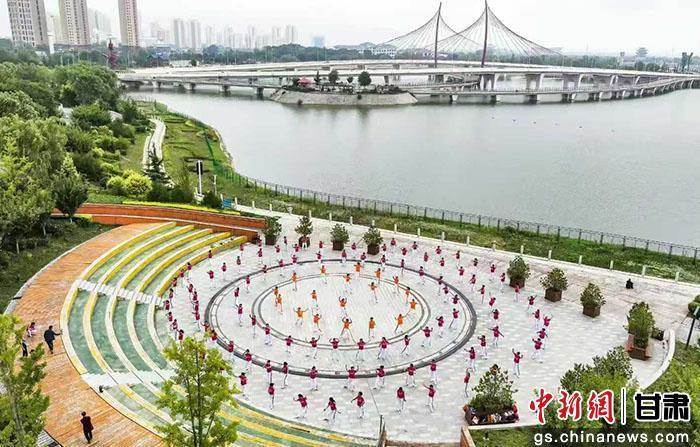甘肅省“全民健身日”主題活動(dòng)慶陽(yáng)市“千人共舞”展示現(xiàn)場(chǎng)。 徐嘉英 攝