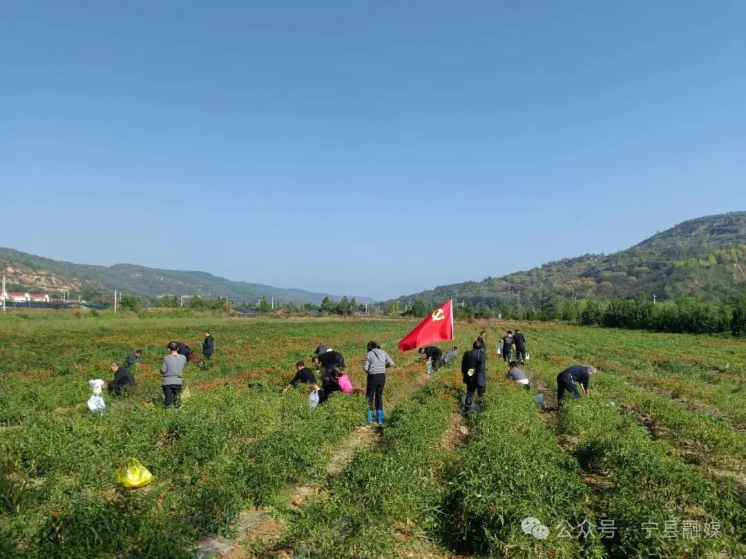 寧縣黨員干部在湘樂鎮(zhèn)連片辣椒種植基地采摘辣椒