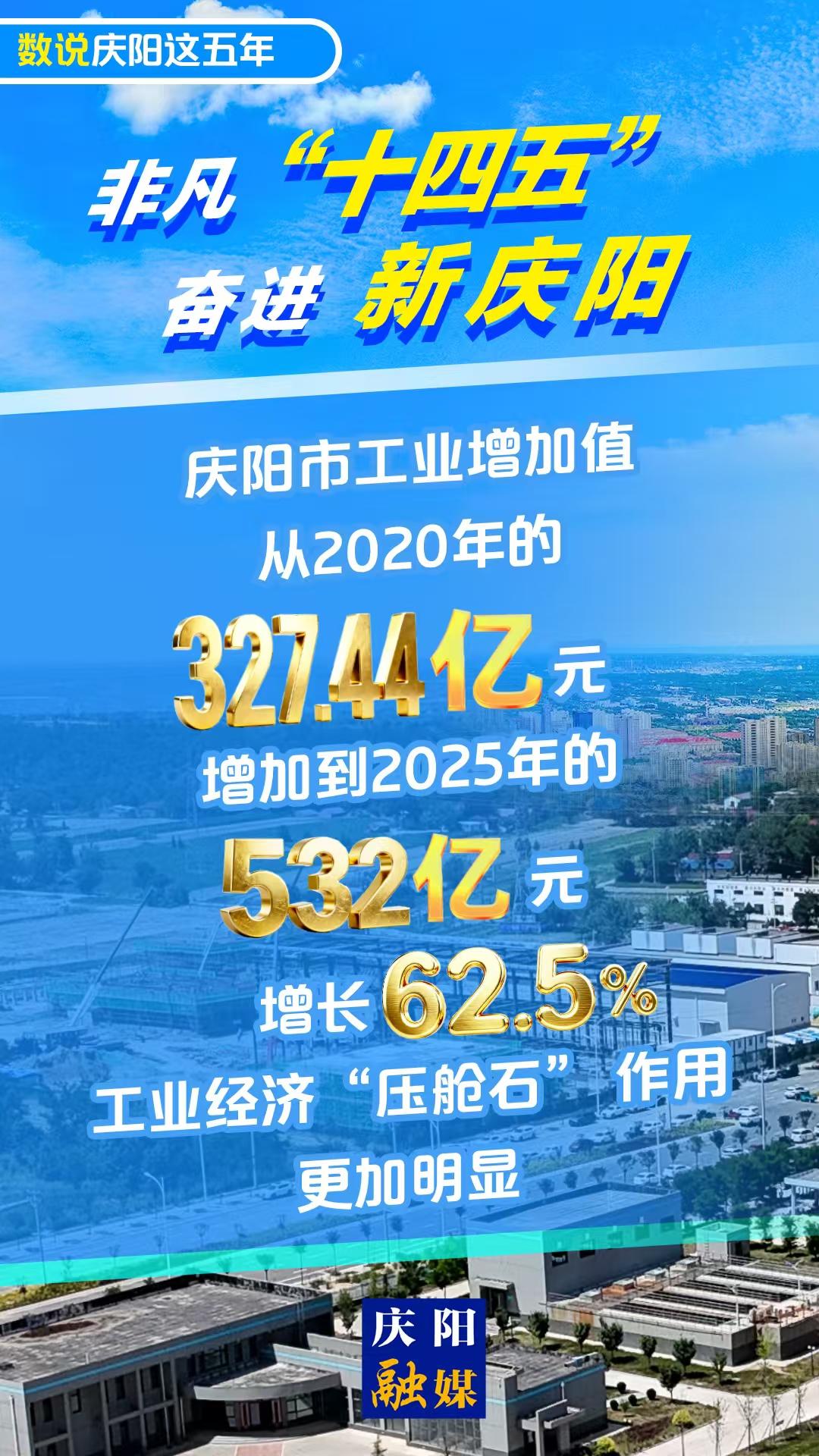 【數(shù)說慶陽這五年】微海報丨慶陽市工業(yè)增加值從2020年的327.44億元增加到2025年的532億元