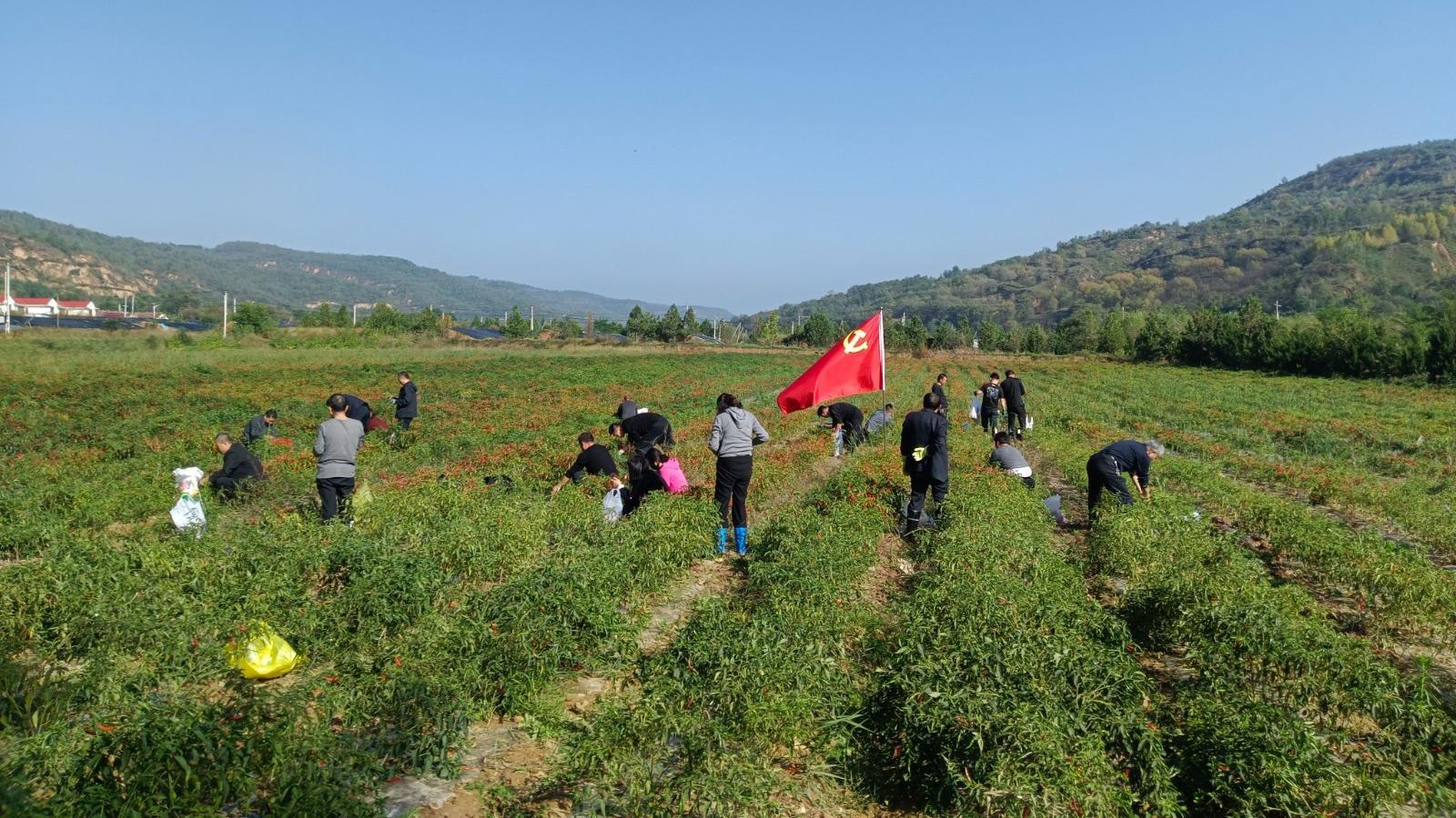 寧縣黨員干部在湘樂鎮(zhèn)連片辣椒種植基地采摘辣椒