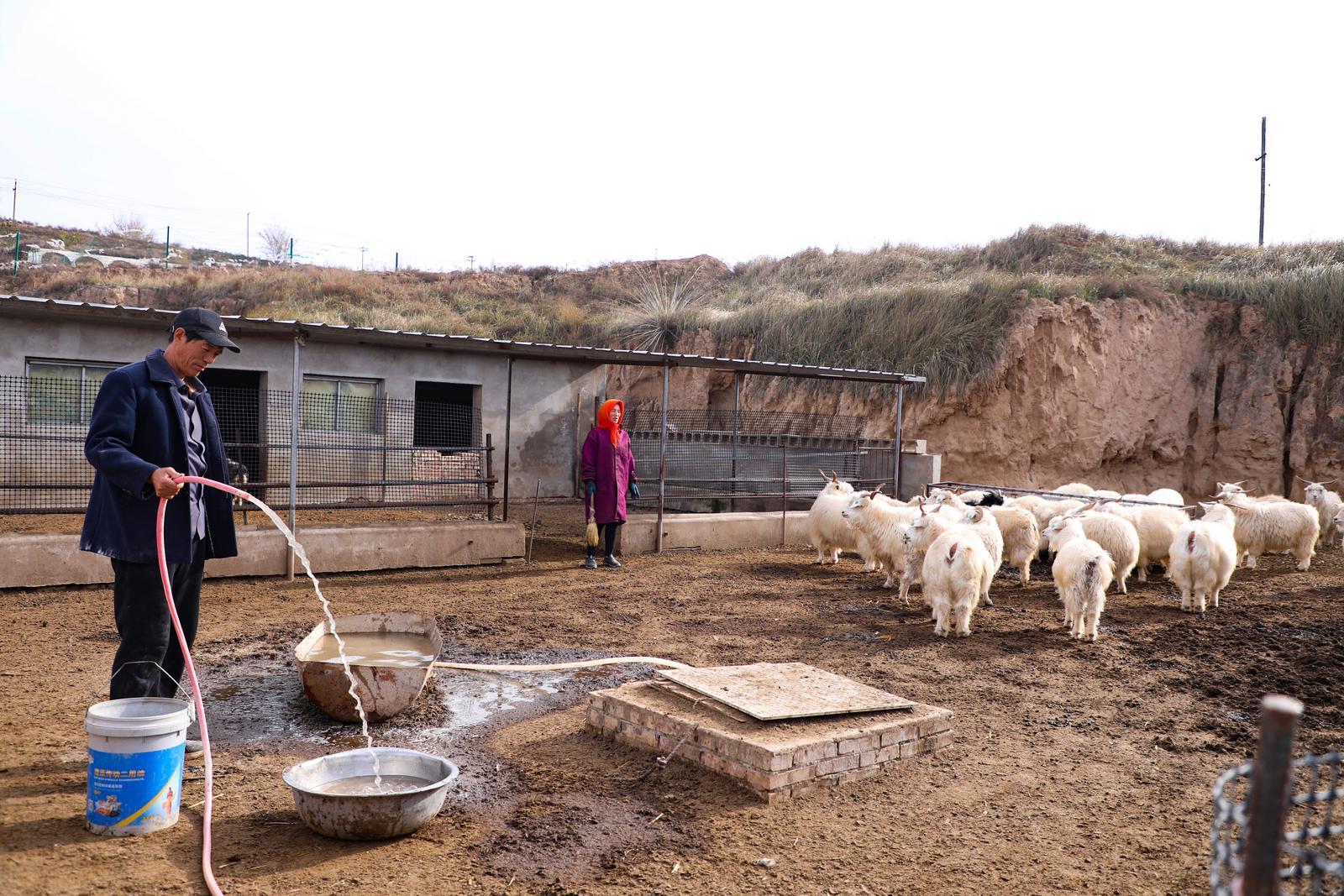 冬日清晨,迎著熹微的晨光,環(huán)縣山城鄉(xiāng)山城堡村村民徐過英打開水龍頭,清澈的自來水嘩嘩涌出,她自然地接滿一桶,放在灶臺上,開始準備早飯。院子另外一側,丈夫曹占榮正將水管拉向羊棚,不一會兒,水槽里住滿了水,一群羊圍攏過來爭相喝水。
