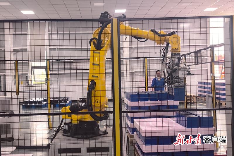 易事特?cái)?shù)字裝備制造(環(huán)縣)有限公司車(chē)間應(yīng)用機(jī)器人生產(chǎn)儲(chǔ)能設(shè)備。新甘肅·甘肅日?qǐng)?bào)記者 劉健 攝