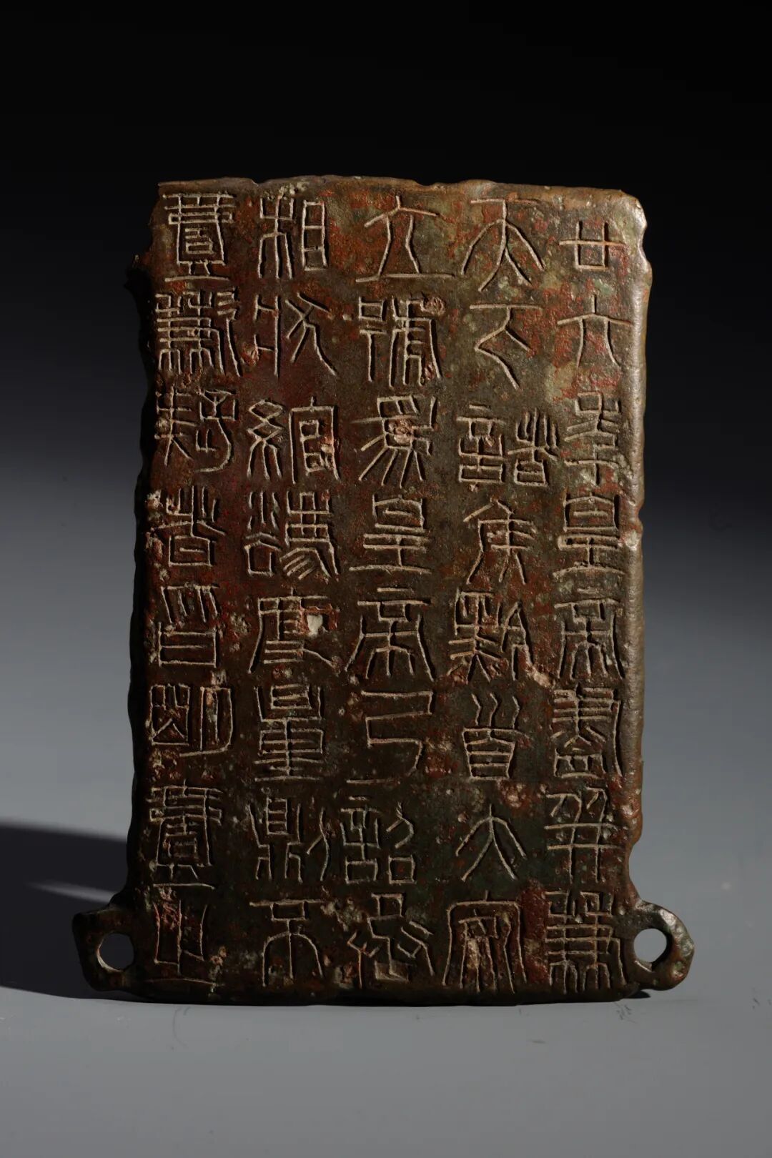 1976年4月出土于鎮(zhèn)原縣城關(guān)鎮(zhèn)富坪村,青銅鑄造,1996年被國家文物局專家組定為國家一級文物。其上陰刻秦始皇二十六年(公元前221年)統(tǒng)一度量衡的詔書,原文為:廿六年,皇帝盡并兼天下諸侯,黔首大安,立號為皇帝,乃詔臣相狀、綰,法度量則不壹,謙(嫌)疑者,皆明壹之。共5行40字,字體為秦篆,字跡清晰,線條纖細,筆畫方折,刀刻痕跡明顯。