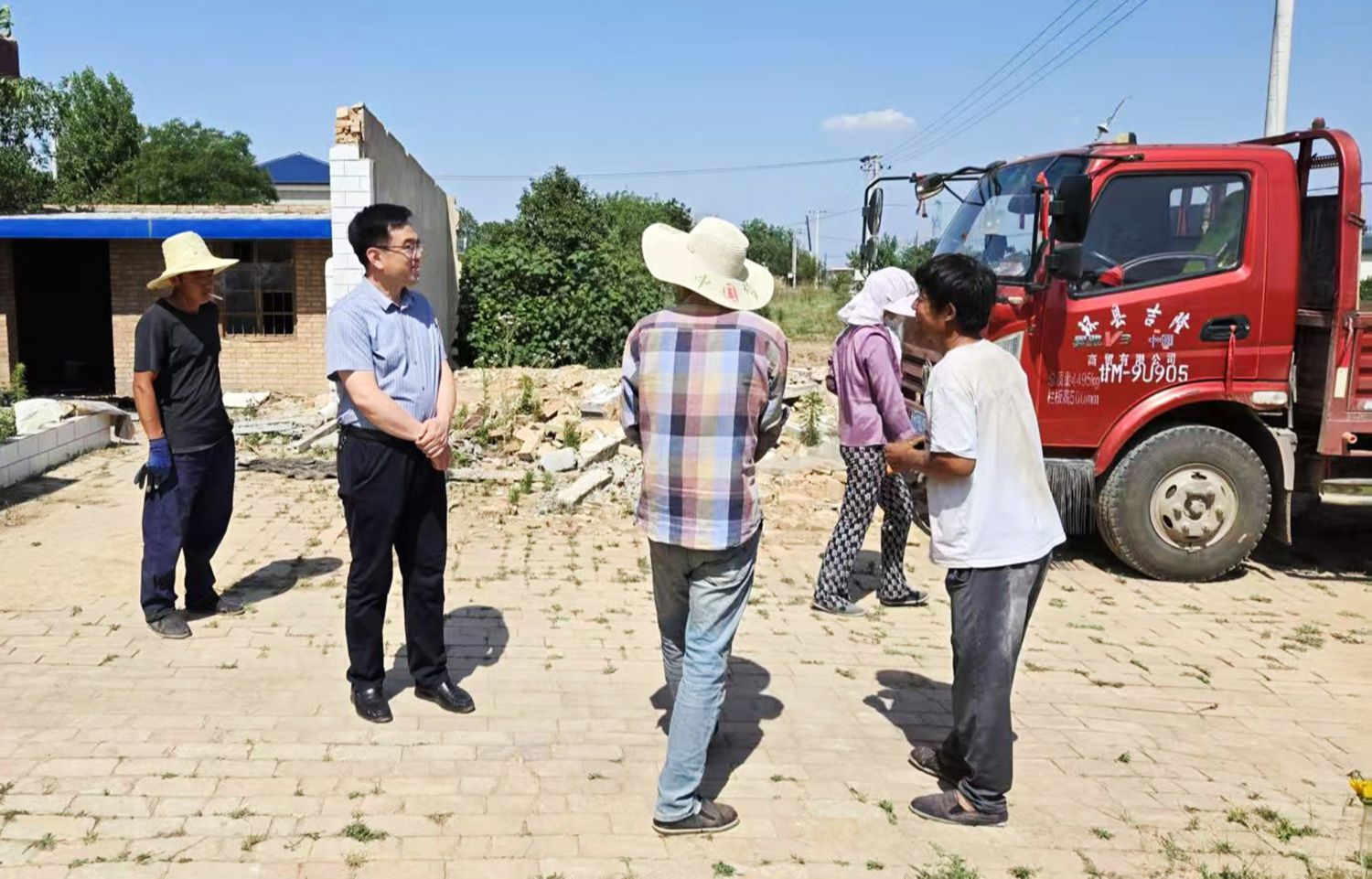 2025年5月13日,張紅林(右一)在何坳村調(diào)研失地農(nóng)民安置點(diǎn)建設(shè)情況。