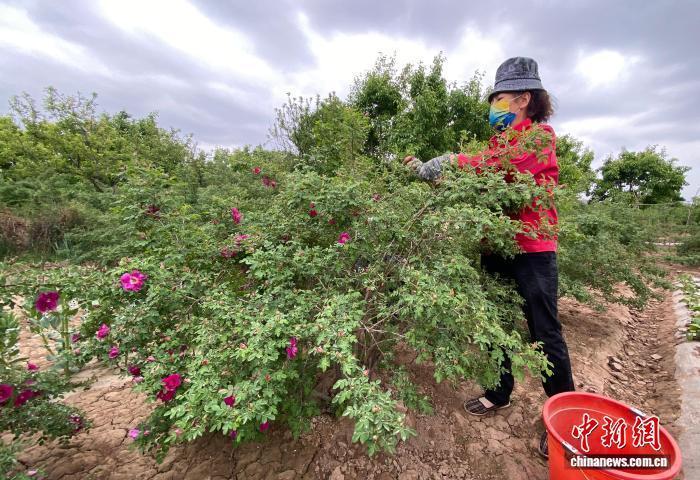 甘肅蘭州市永登縣,花農(nóng)采摘苦水玫瑰花。(資料圖)高展 攝