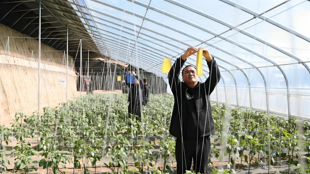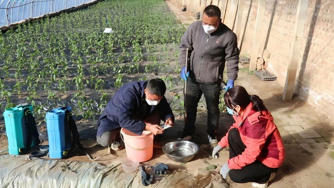 在慶陽(yáng)萬(wàn)潤(rùn)園種植養(yǎng)殖農(nóng)民專(zhuān)業(yè)合作社的辣椒大棚內(nèi),農(nóng)技人員正在指導(dǎo)種植戶(hù)科學(xué)配比藥劑,對(duì)辣椒苗實(shí)施葉面噴施,增強(qiáng)幼苗抗寒能力。