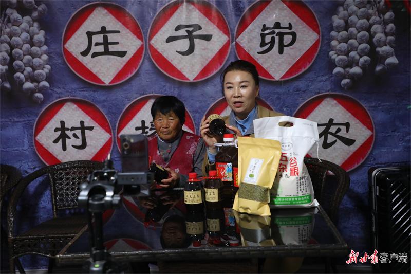 楊清艷帶領(lǐng)村民直播賣貨。新甘肅·甘肅日?qǐng)?bào)通訊員 喬潔 攝