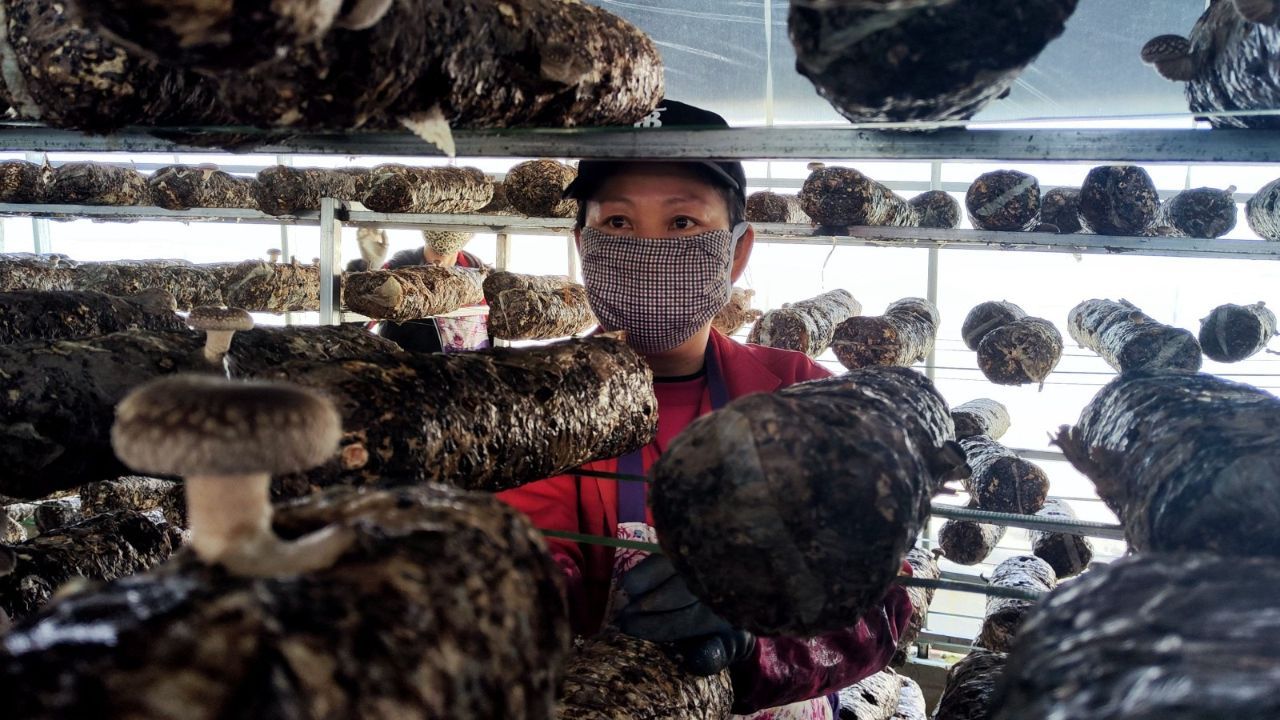 華池縣山莊鄉(xiāng)食用菌生產(chǎn)基地,菇農(nóng)正在采摘香菇。封康康 攝