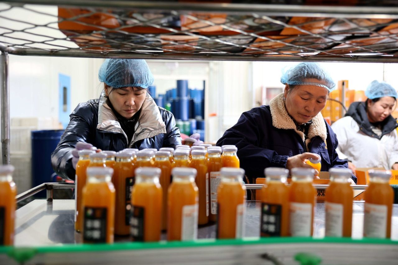 華池縣甘農(nóng)生物科技有限公司工人正在包裝沙棘飲料。雷彩利攝