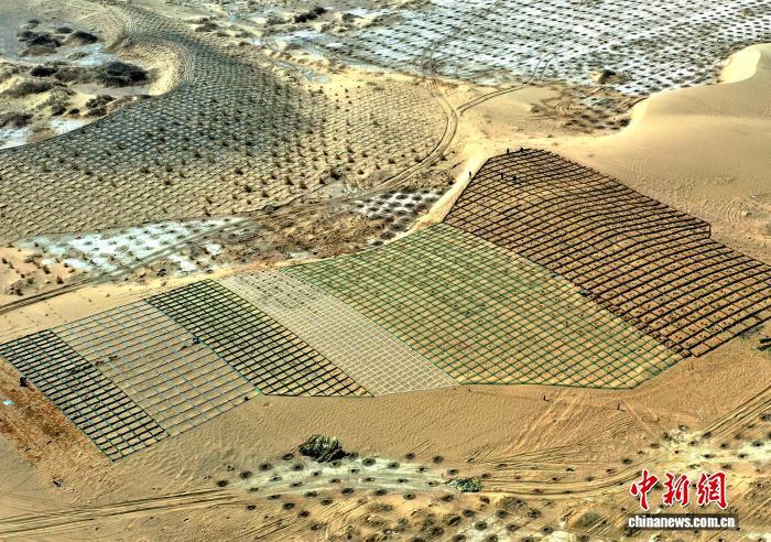 甘肅省武威市民勤縣采用治沙新技術。(資料圖)馬愛彬 攝