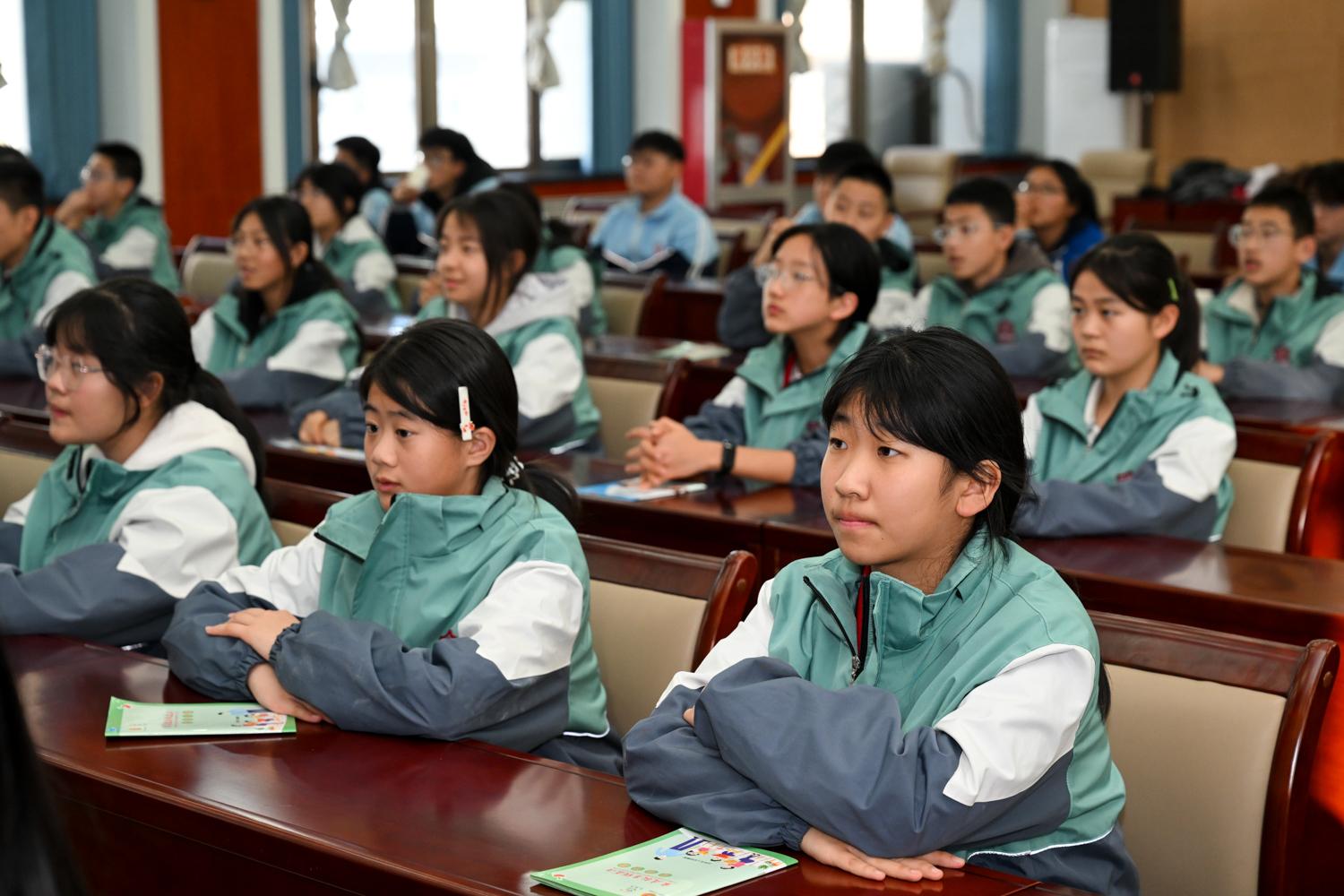 學(xué)生們認(rèn)真觀看和聆聽(tīng)模擬庭審。