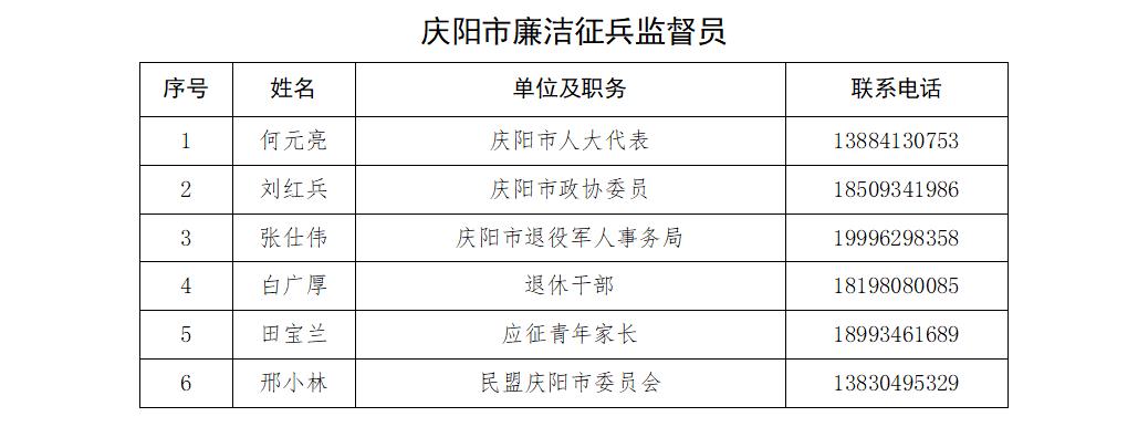 現(xiàn)將全市廉潔征兵監(jiān)督員和市縣兩級廉潔征兵監(jiān)督舉報電話信箱進(jìn)行公示,接受應(yīng)征青年和家長反映違反征兵紀(jì)律規(guī)定現(xiàn)象。