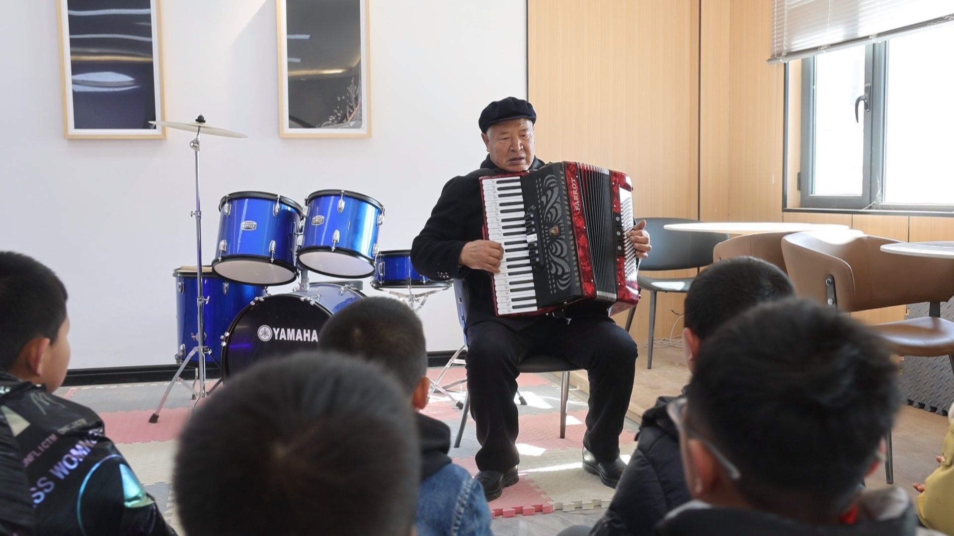 文化活動區(qū)里,退休老人齊聚一堂,下棋打牌、演奏樂器,晚年生活多姿多彩。