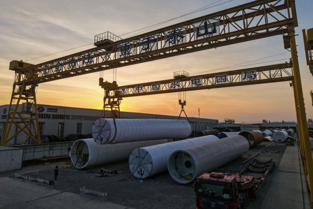 記者在中國(guó)水電四局(酒泉)新能源裝備有限公司的裝運(yùn)生產(chǎn)線看到,龍門(mén)吊正穩(wěn)穩(wěn)吊裝風(fēng)電塔筒?,F(xiàn)場(chǎng)工作人員介紹,這批塔筒將經(jīng)霍爾果斯口岸出口,最終運(yùn)抵烏茲別克斯坦。