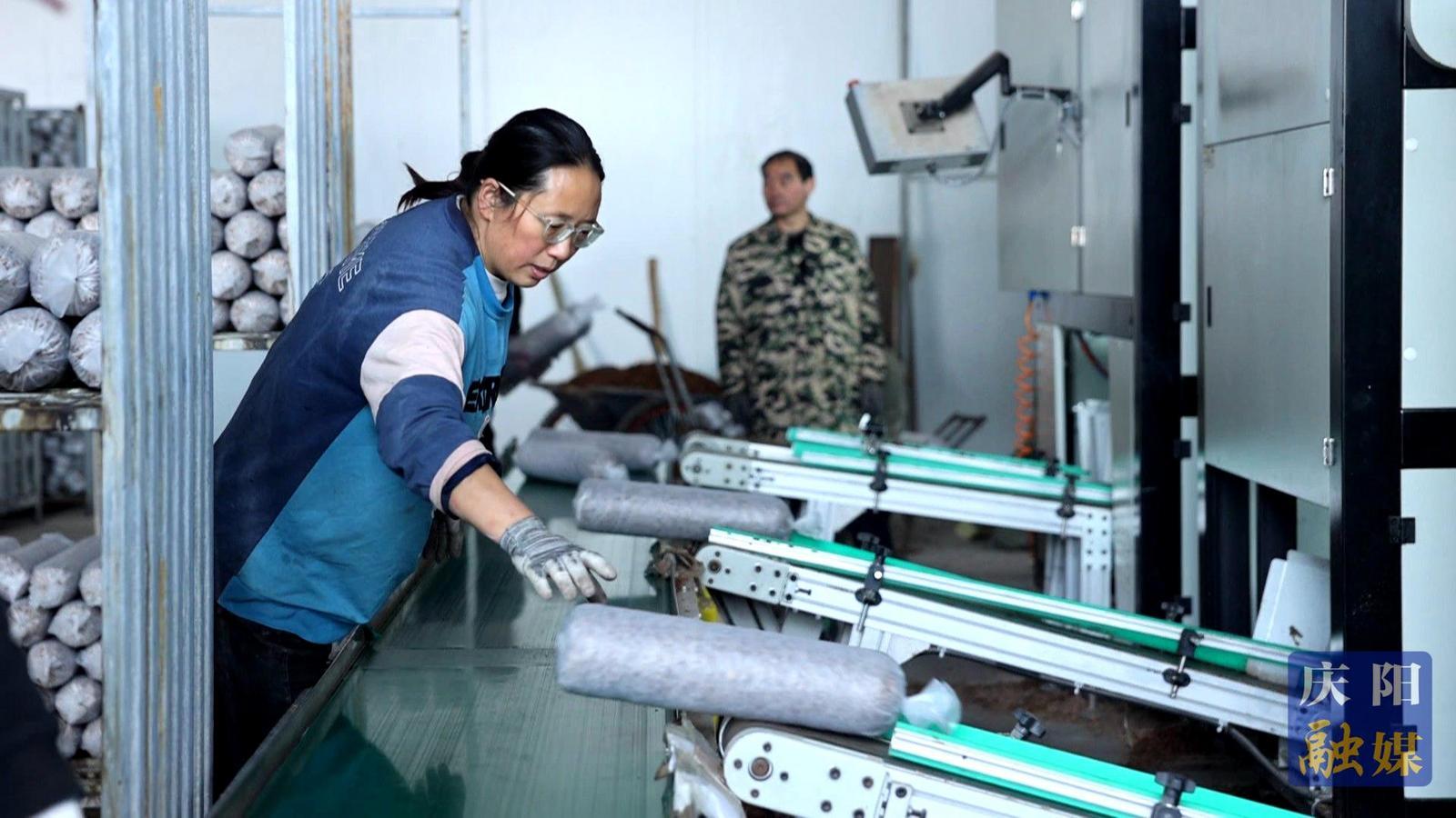 在華池縣閩輝農(nóng)業(yè)科技有限公司的菌棒生產(chǎn)車間內(nèi),機(jī)器轟鳴作響,工人們正有條不紊地進(jìn)行菌棒裝袋、分揀等作業(yè)。