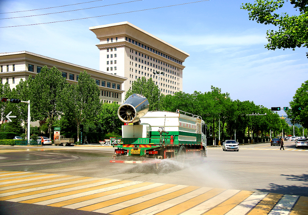 灑水車噴灑路面降塵。李建強(qiáng)攝
