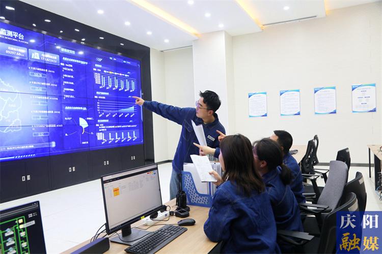 隴東能源大數(shù)據(jù)中心,電力工作人員在分析相關(guān)數(shù)據(jù)。