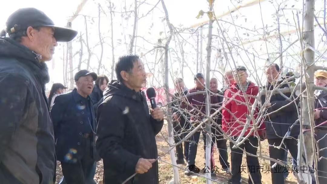 多維聯(lián)動,全域覆蓋,廣泛傳播務果技能。創(chuàng)新采用“理論+實操”“集中+分片”“線上+線下”三維聯(lián)動模式,專家團隊以“接地氣”的通俗講解、手把手的現(xiàn)場示范,將復雜技術轉化為易懂易學的實操方案。同時,針對典型案例、關鍵技術精心錄制系列教學小視頻,通過微信公眾號、果農微信群等平臺廣泛轉發(fā),既保障現(xiàn)場學員學有所獲,又為無法到場的果農搭建起“云端課堂”,實現(xiàn)“居家能學、隨時可學”的全覆蓋培訓目標,目前已有30余條技術培訓視頻在各縣(區(qū))微信群轉發(fā)傳播。慶城縣白馬鋪鎮(zhèn)的果園里,高級工程師徐巨濤為了讓果農更加全面掌握冬季果樹修剪技術,全過程親自操作示范,這一畫面被錄制成視頻傳播到慶城果農手機上。