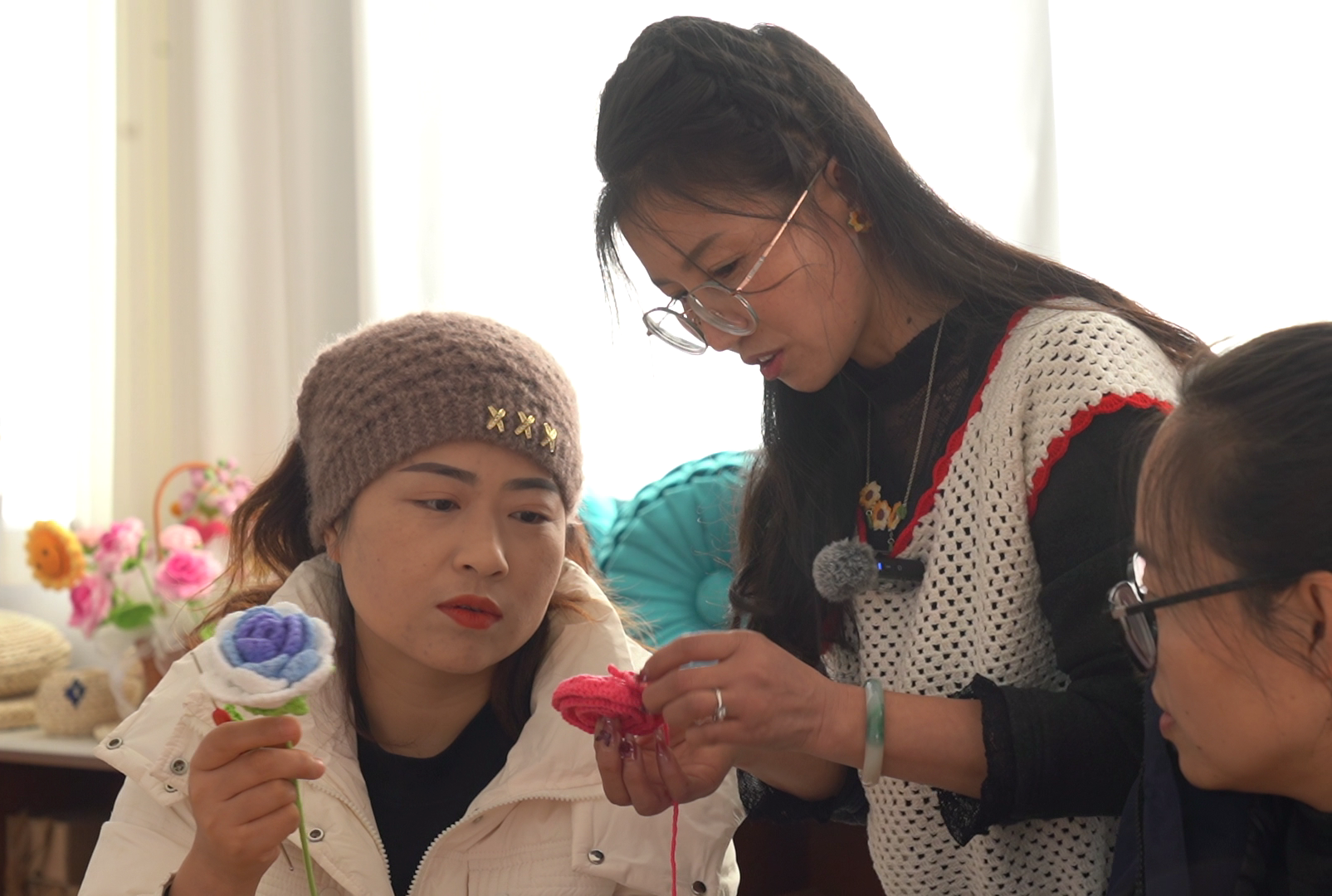 每個(gè)工作日的下午,工坊里都坐滿了學(xué)員。蘇芳從最基礎(chǔ)的針法教起,耐心解答每一個(gè)問題。學(xué)員李彩榮是首批學(xué)員之一,她說:“一開始連針都拿不好,是蘇老師一步步帶著我,告訴我怎么用力、怎么繞線?!比缃?,李彩榮已經(jīng)能夠獨(dú)立完成復(fù)雜的作品,并通過銷售手工編織品為家庭增加了收入。