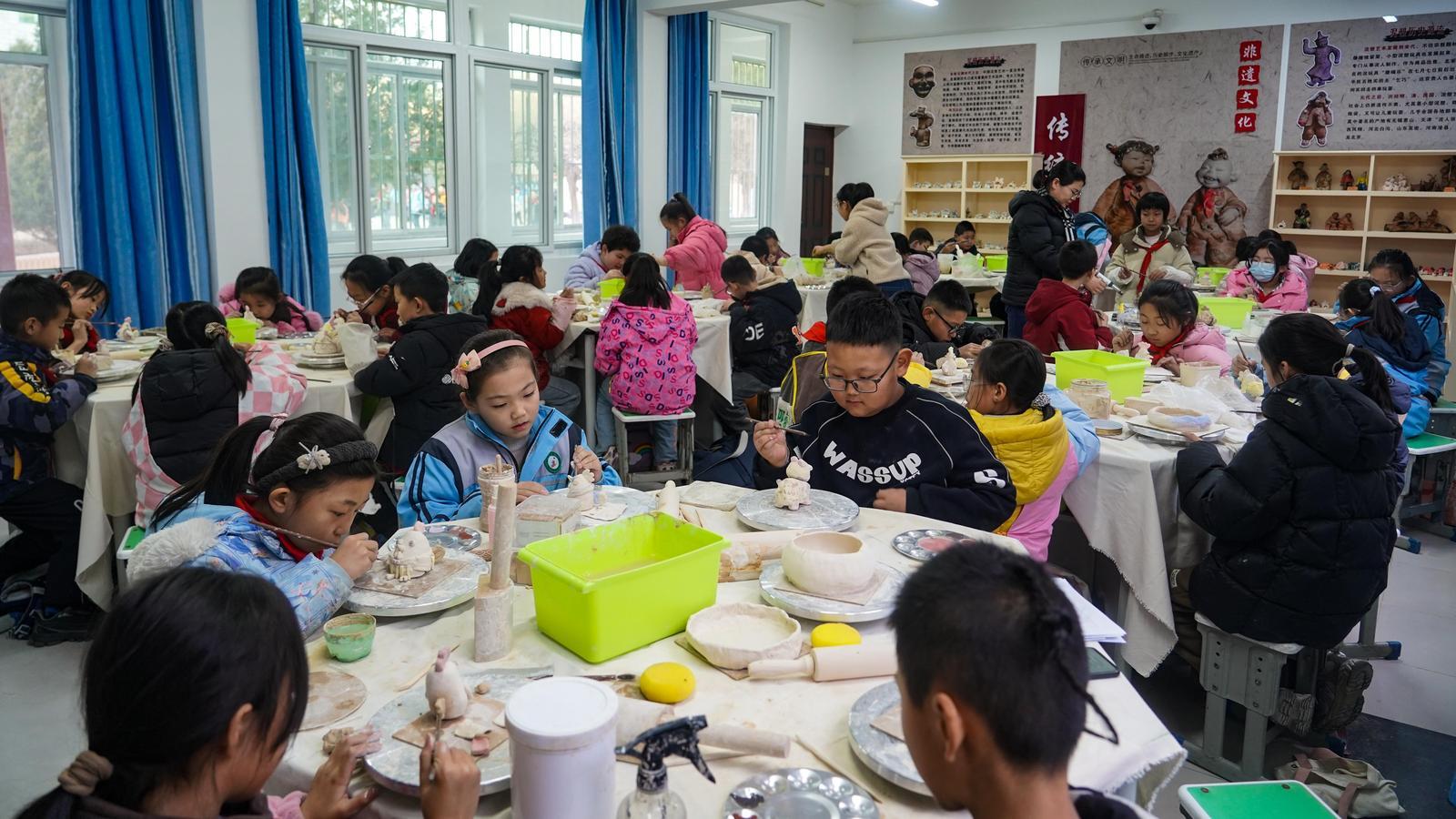 除了道情演唱和皮影雕刻,環(huán)縣南關(guān)小學(xué)還引入了泥塑等非遺相關(guān)課程?!拔覀兿Mㄟ^(guò)親手體驗(yàn),在孩子們心中播下熱愛(ài)與傳承傳統(tǒng)文化的種子。”南關(guān)小學(xué)教務(wù)主任趙亮介紹,學(xué)校聘請(qǐng)非遺傳承人定期到校指導(dǎo),確保皮影演唱、雕刻等課程的“原汁原味”。這些課程不僅豐富了學(xué)生們的課后生活,更讓非遺文化以可感、可學(xué)、可玩的方式走進(jìn)青少年心中,讓古老的皮影藝術(shù)真正“活”在校園里。