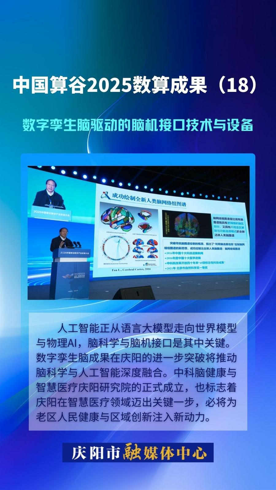 中國(guó)算谷2025數(shù)算成果(18)丨慶陽市引入數(shù)字孿生腦驅(qū)動(dòng)創(chuàng)新技術(shù) 推動(dòng)腦科學(xué)與人工智能深度融合
