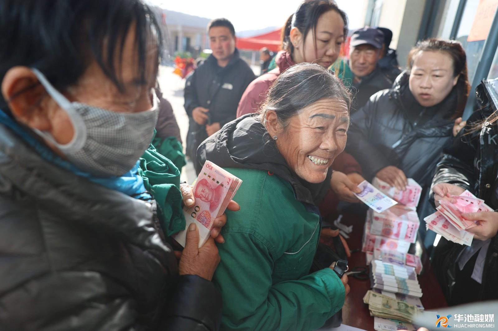 分紅現(xiàn)場(chǎng)秩序井然,藥農(nóng)們依次排隊(duì)核對(duì)信息、領(lǐng)取分紅。沉甸甸的分紅款,既是一年辛勤付出的豐厚回報(bào),更是對(duì)未來(lái)美好生活的熱切期許?!拔以诤惴楣局饕N植藥材,學(xué)了不少技術(shù),這次分紅能拿到31192元。公司對(duì)我們工人特別好,中午管飯還車接車送,我就想多掙點(diǎn)錢,給家里增加收入?!比A池縣五蛟鎮(zhèn)劉家灣村村民王秀琴拿著分紅款,喜悅之情溢于言表。