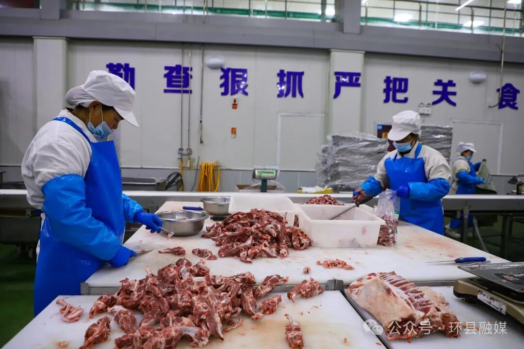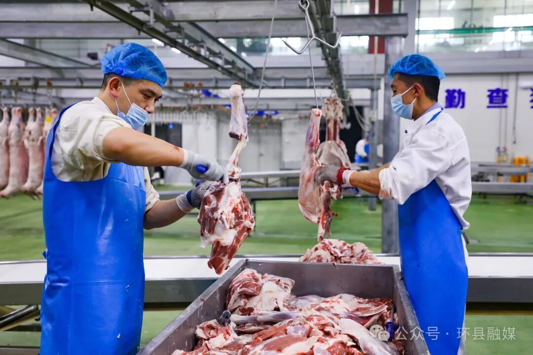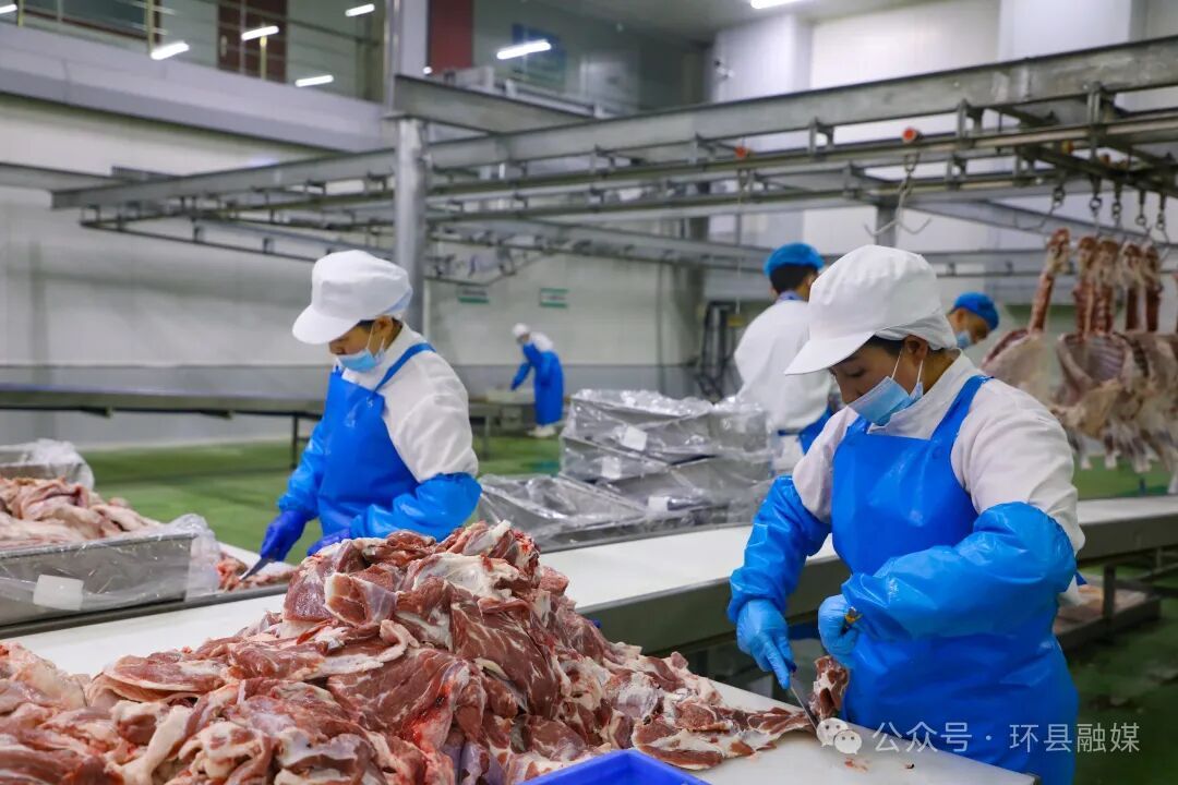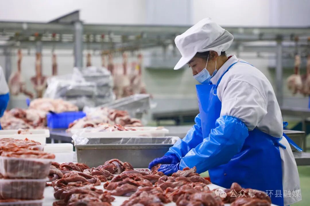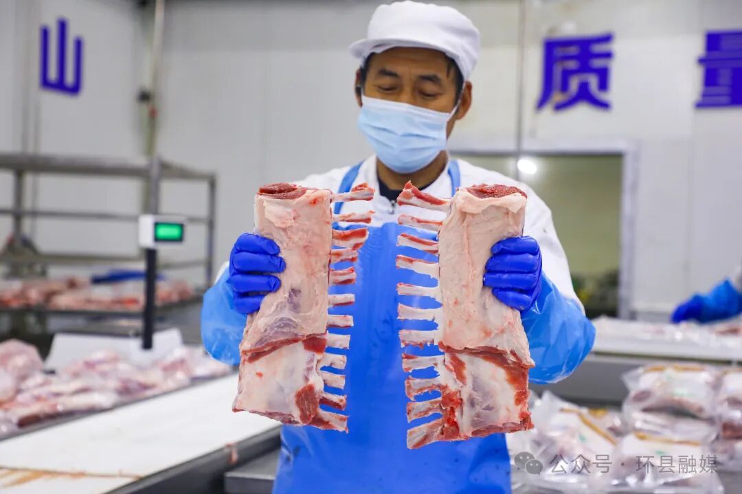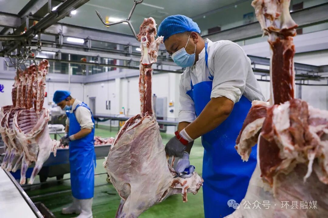 清晨,環(huán)縣中盛屠宰食品廠的現(xiàn)代化分割車間內(nèi)早已燈火通明。生產(chǎn)線上,來(lái)自環(huán)縣本土養(yǎng)殖的優(yōu)質(zhì)湖羊胴體懸掛在自動(dòng)化軌道上,緩緩移動(dòng)。身著全套工裝、佩戴口罩帽子的工人們手法嫻熟,按照標(biāo)準(zhǔn)流程對(duì)羊只進(jìn)行精細(xì)化分割。