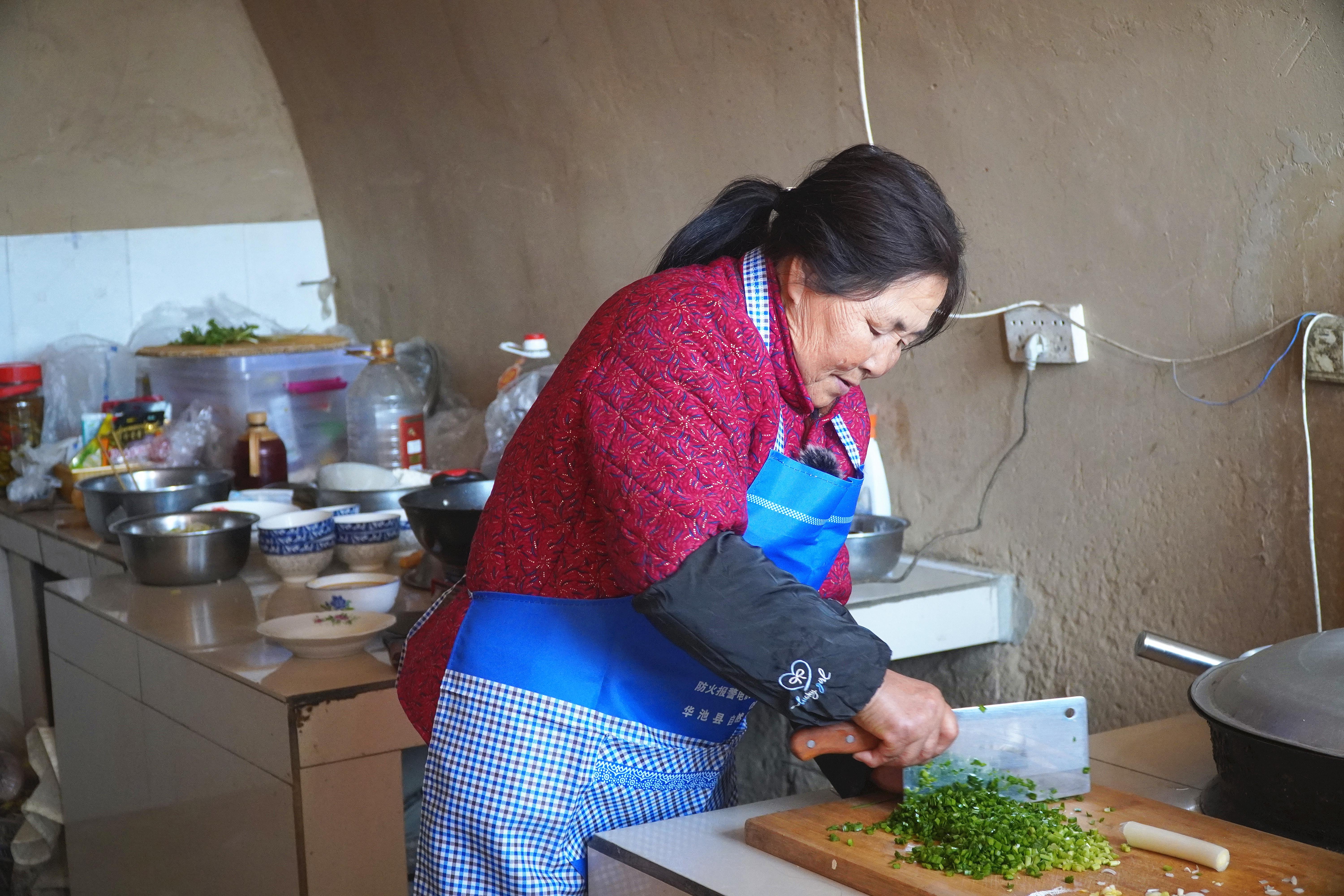 冬日的午后,記者一行驅(qū)車來到鐵角城村的賀九花家。暖陽漫過紅磚院墻,灑在平整的水泥磚地上。院子深處,五孔紅磚窯洞一字排開。廚房里,賀九花正張羅著一家人的午飯?!叭缃袢兆虞p松多了,三個小叔子中,老四有了自己的家庭,老二、老三有政府關(guān)照,我主要在家負責看護?!彼贿吤钜贿呎f。