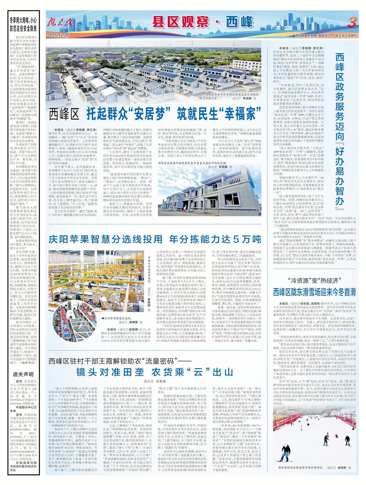 寒冬時(shí)節(jié),民生冷暖最牽動(dòng)人心。在西峰區(qū),一幅“安居”與“樂(lè)業(yè)”同步推進(jìn)的暖心畫卷徐徐展開(kāi)。入住新居的避險(xiǎn)搬遷戶,在智能化空氣能產(chǎn)品的護(hù)航下,迎來(lái)了溫暖如春的冬天;與此同時(shí),失地農(nóng)民安置小區(qū)正在火熱施工中,勾勒出明日家園的幸福雛形。兩種場(chǎng)景,一同見(jiàn)證著從“憂居”到“優(yōu)居”的民生溫度。