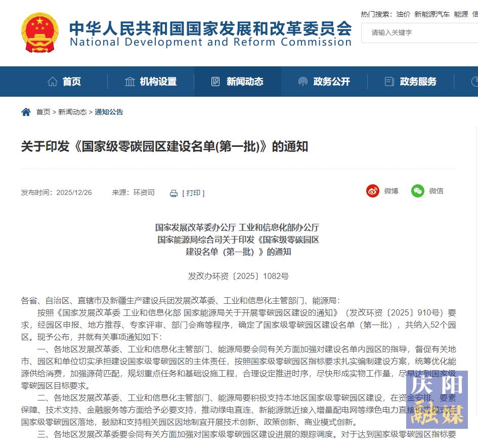 慶陽(yáng)網(wǎng)訊(慶陽(yáng)融媒記者 杜斌偉 )12月23日,國(guó)家發(fā)展改革委辦公廳、工信部辦公廳、國(guó)家能源局綜合司公布了國(guó)家級(jí)零碳園區(qū)建設(shè)名單(第一批),甘肅慶陽(yáng)東數(shù)西算產(chǎn)業(yè)園區(qū)榜上有名,成為52個(gè)建設(shè)國(guó)家級(jí)零碳園區(qū)之一,建設(shè)周期為2025年至2030年。