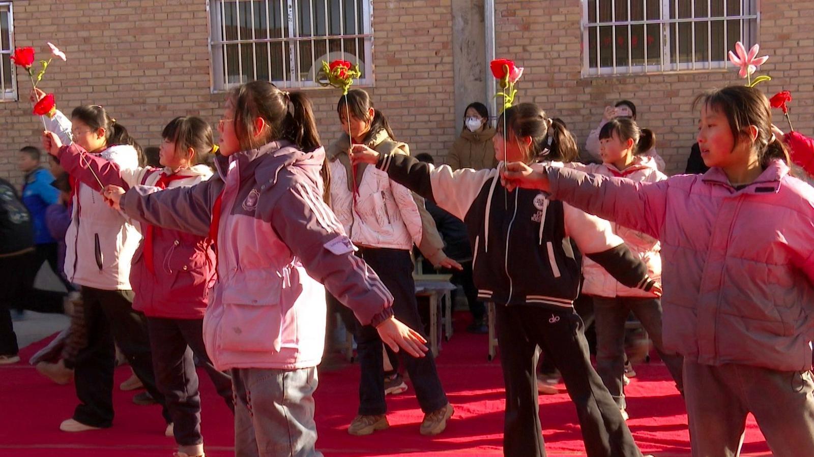 為表達(dá)真誠的謝意,半坡小學(xué)學(xué)生還現(xiàn)場表演了舞蹈《送你一朵小紅花》和《聽我說謝謝你》。純凈的歌聲與動人的演繹,凝聚著孩子們深深的感激之情,也讓整個校園洋溢著溫馨與感動。
