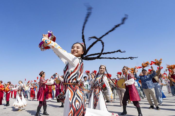 2025年9月23日下午,群眾載歌載舞,喜迎新疆維吾爾自治區(qū)成立70周年。新華社記者 畢曉洋 攝