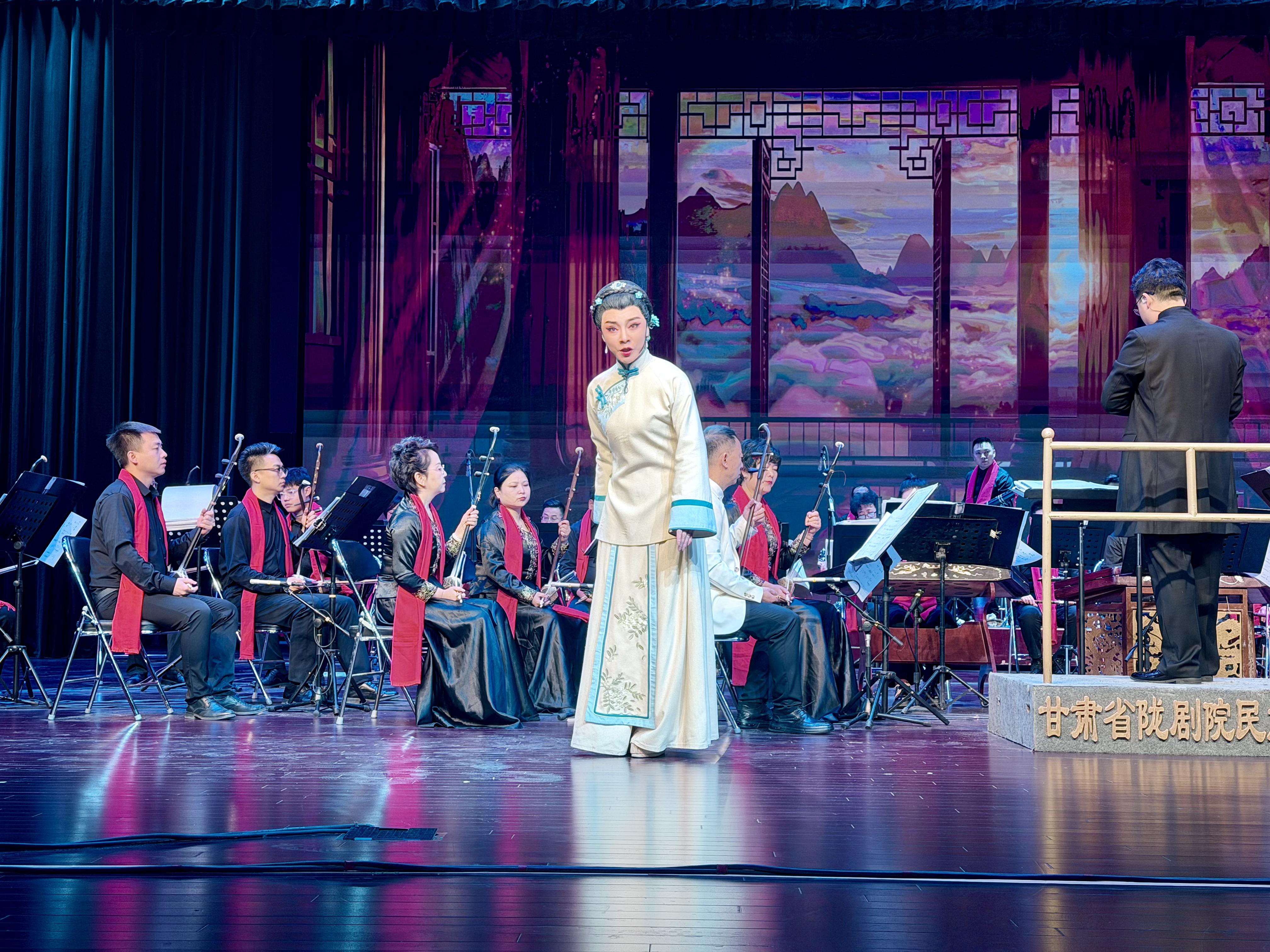隨后,《西部民歌組曲》《假婿乘龍》選段、二胡協奏《紅梅隨想曲》等節(jié)目輪番登場,或清新雅致,或激昂澎湃,或深情雋永,隴劇的婉轉、民樂的厚重在此交織碰撞?!恫磺募沽骸贰洞蠛訓|流》等隴劇選段,以鮮明的地域特色和深刻的情感內涵,贏得陣陣掌聲。