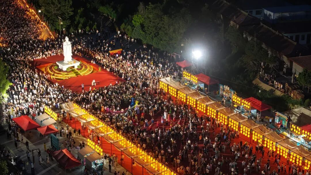 若說文脈體驗是心靈的滋養(yǎng),藥王洞養(yǎng)生小鎮(zhèn)的仲夏夜,則是煙火氣十足的歡樂暢享。每晚八點,小鎮(zhèn)迎來全天最沸騰的時刻,青磚灰瓦的街巷間,萬余盞燈籠與創(chuàng)意燈帶交相輝映,光影交織成夢幻圖景,游客摩肩接踵,歡聲笑語在夜色中久久回蕩。