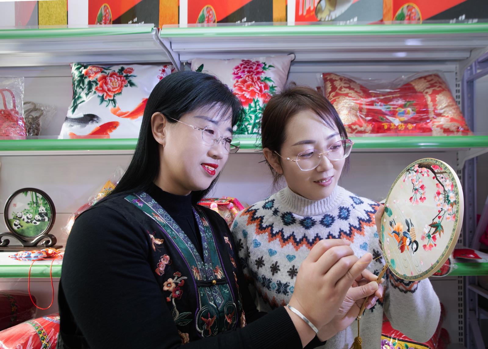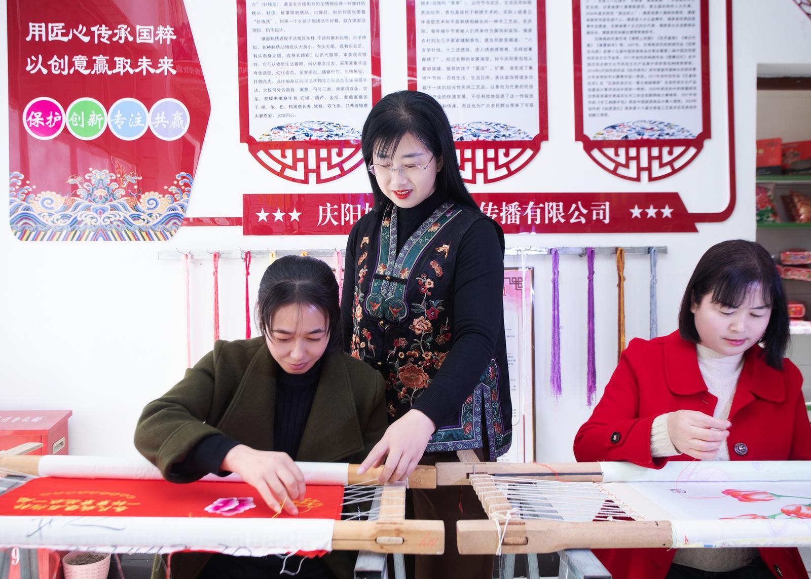 任艷艷指導繡娘創(chuàng)作。