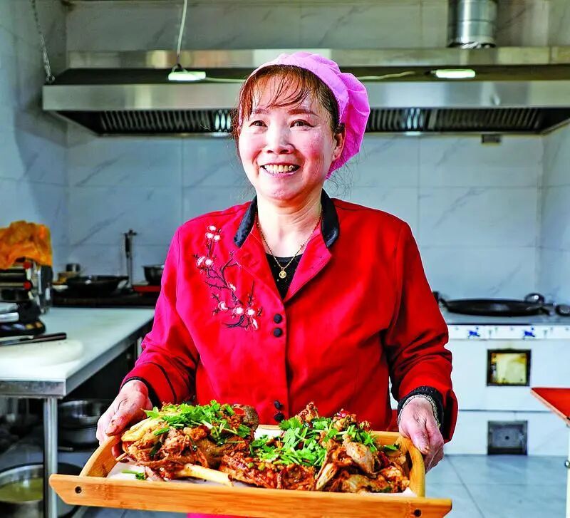 “入冬以來,我們每天至少賣出十幾只羊羔,遇到周末銷量翻倍,熟羊肉、生鮮禮盒供不應(yīng)求,收入已超30萬元?!奔t土咀村大件羊肉制作明星戶惠菊香一邊翻炒羊肉一邊介紹。