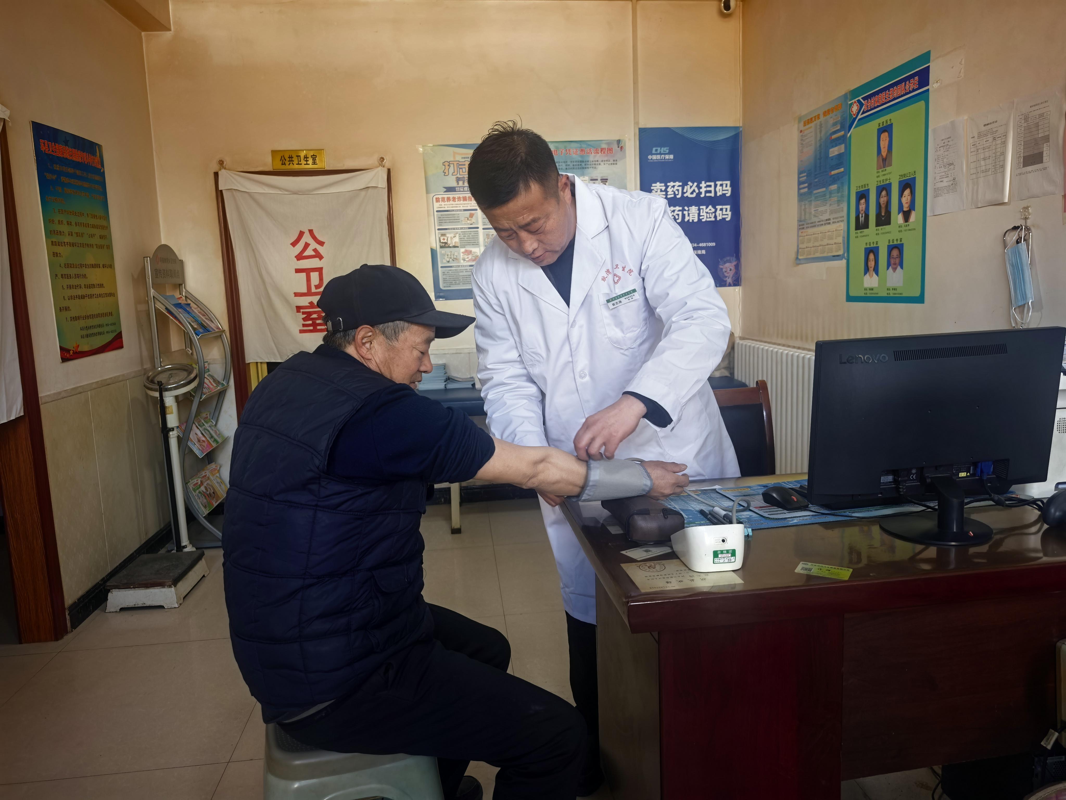 走進(jìn)梁占榮老人的家,更能體會這份守護(hù)的具體模樣。86歲的梁占榮和79歲的妻子繆蘭花,相濡以沫,守著老屋。崔志濤上門時,屋里便熱鬧起來。他一邊熟練地為老兩口測量血壓,用聽診器仔細(xì)聽著心跳,一邊像拉家常般詢問最近的飲食睡眠。檢查完畢,他拿出老人的藥,一遍遍耐心講解用法用量?!笆?,嬸,豬肉要少吃,酒和煙咱們可得戒了。炒菜啊,油和鹽都得再減減……”這些叮囑,他不知重復(fù)了多少遍,每一次卻依然如同第一次般認(rèn)真、懇切。老人聽得頻頻點(diǎn)頭,渾濁的眼眸里映照著這位“鄉(xiāng)村健康管家”可靠的身影。這樣的場景,在張臺村的許多院落里,靜默而規(guī)律地上演著。