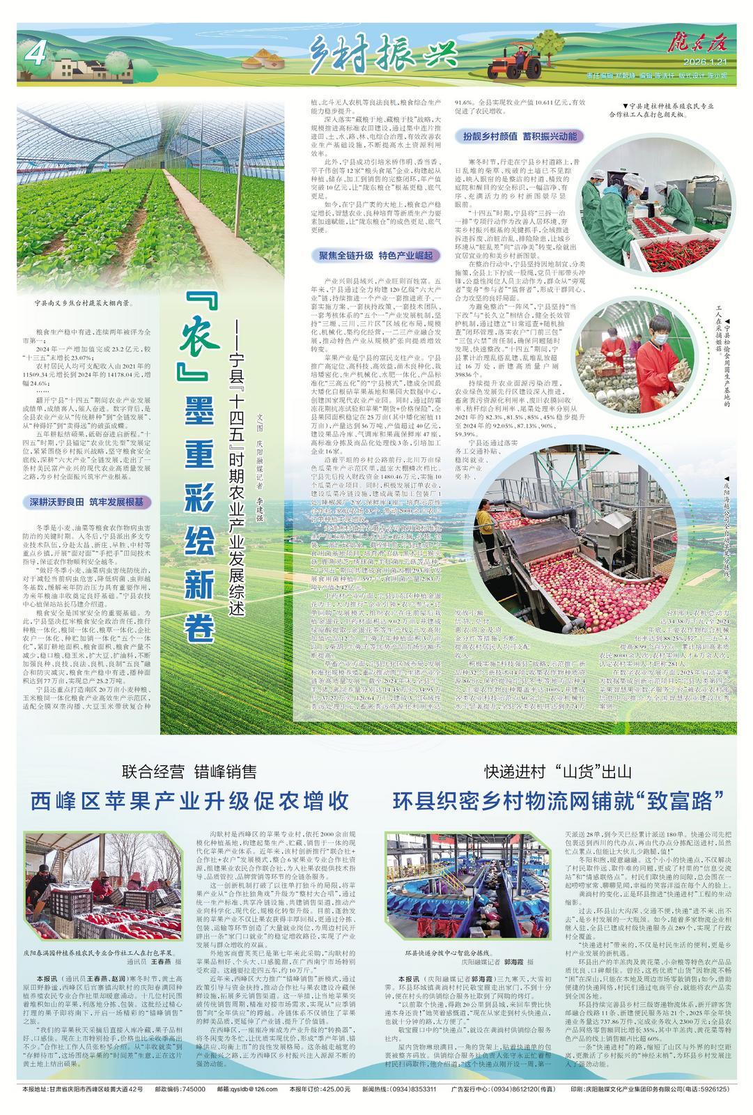 五年耕耘結(jié)碩果,砥礪奮進(jìn)啟新程?!笆奈濉睍r(shí)期,寧縣錨定“農(nóng)業(yè)優(yōu)先型”發(fā)展定位,緊緊圍繞鄉(xiāng)村振興戰(zhàn)略,堅(jiān)守糧食安全底線,深耕“六大產(chǎn)業(yè)”全鏈發(fā)展,走出了一條村美民富產(chǎn)業(yè)興的現(xiàn)代農(nóng)業(yè)高質(zhì)量發(fā)展之路,為鄉(xiāng)村全面振興筑牢產(chǎn)業(yè)根基。
