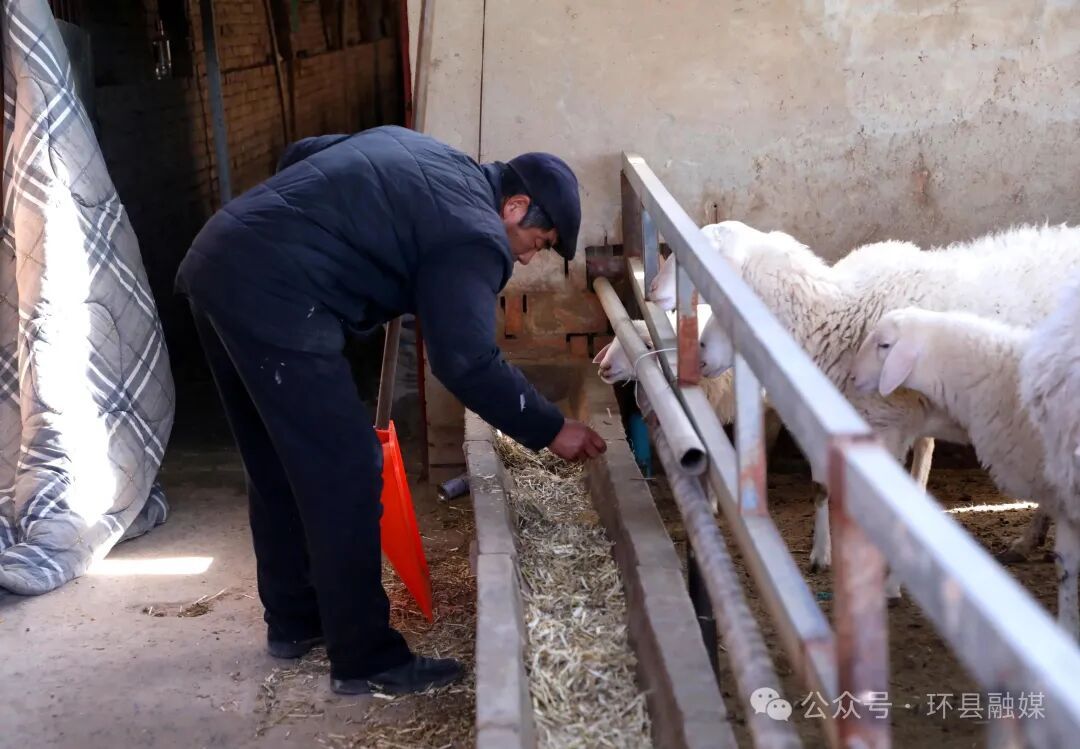 清晨,大樹塬村養(yǎng)殖大戶趙相明緩緩?fù)崎_羊舍的大門,隨著門軸發(fā)出“嘎吱”一聲輕響,他忙碌的一天正式開啟。走進羊舍,一群膘肥體壯的羊兒“咩咩”地叫著,每次推開門,趙相明都會先靜靜站在門口,仔細觀察羊群的整體狀態(tài),隨后挨個查看每只羊的情況,摸摸羊的肚子,看看羊的糞便,以此來了解羊的健康狀態(tài),這是他十幾年來雷打不動的習(xí)慣,正是這份執(zhí)著,讓他成為村里的養(yǎng)羊能手?!梆B(yǎng)羊這事兒,就得上心,多觀察多琢磨,才能把羊養(yǎng)好。我今年出欄近 90 只,年前還準備再交 60 只,這樣算下來,總收入可達十三萬元?!壁w相明笑著說道。