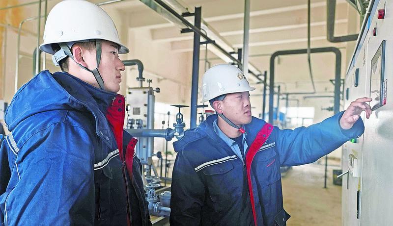 川軍氨能源裝備智造基地工作人員查看設備運轉(zhuǎn)情況。通訊員 李麗娜 攝
