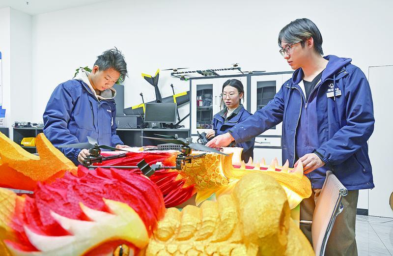 “‘飛天龍鳳’系列主題無人機,能用到各類文化活動、旅游景區(qū)燈光表演里,把‘龍鳳呈祥’這個經(jīng)典意象通過空中演繹的方式展現(xiàn)出來?!碧镥捣暾f,下一步,公司計劃將月產(chǎn)能提升到300臺,同時研發(fā)智能飛行器等新產(chǎn)品。公司發(fā)展不僅能衍生研發(fā)、制造、飛手等高技術崗位,還能拉動上游新材料、飛控系統(tǒng)、LED照明等相關產(chǎn)業(yè)協(xié)同發(fā)展,助力構(gòu)建完整產(chǎn)業(yè)生態(tài)。
