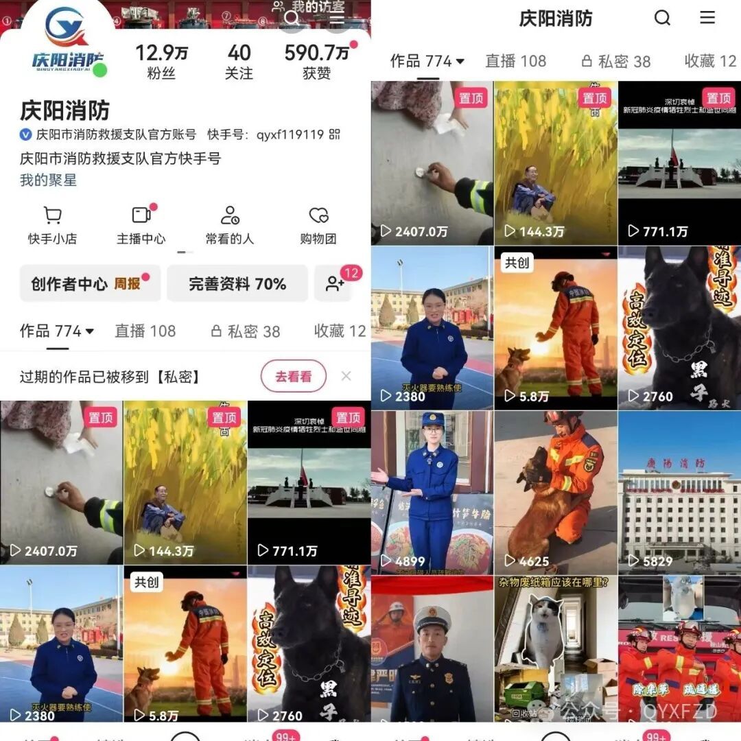 據(jù)了解,“慶陽消防”官方快手賬號(hào)已累計(jì)發(fā)布原創(chuàng)短視頻774條,收獲點(diǎn)贊收藏590.7萬,圈粉13萬人,憑借扎實(shí)的內(nèi)容輸出和廣泛的社會(huì)影響力脫穎而出。近年來,慶陽支隊(duì)高度重視政務(wù)新媒體運(yùn)維建設(shè),始終秉承“發(fā)好消防聲音、講好消防故事、傳播消防知識(shí)正能量”的宣傳宗旨,主動(dòng)順應(yīng)媒體融合發(fā)展趨勢,堅(jiān)守移動(dòng)優(yōu)先策略,構(gòu)建起涵蓋抖音、快手、視頻號(hào)、微博、微信及官方網(wǎng)站等10余個(gè)平臺(tái)的全媒體宣傳矩陣。截至目前,支隊(duì)已通過各平臺(tái)發(fā)布消防信息200余萬條,總閱讀量突破20億次,用指尖上的“政能量”搭建起消防工作與群眾溝通互動(dòng)的橋梁,全方位展現(xiàn)了慶陽消防隊(duì)伍的良好風(fēng)貌。