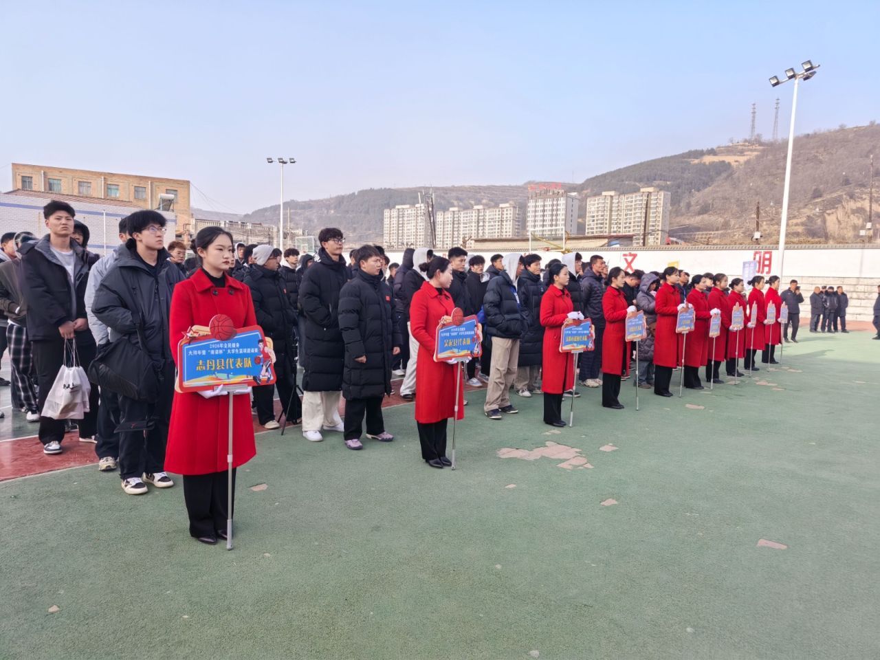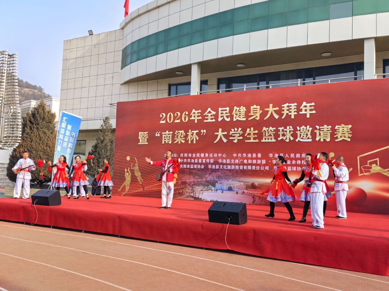 1月27日,2026年全民健身大拜年暨首屆“南梁杯”大學(xué)生籃球邀請(qǐng)賽在華池縣體育館正式拉開(kāi)帷幕。來(lái)自陜甘兩省的9支大學(xué)生代表隊(duì)齊聚一堂,以籃球?yàn)槊?、以青春為名,用躍動(dòng)的身影和拼搏的汗水,為老區(qū)群眾獻(xiàn)上一場(chǎng)充滿活力與激情的體育盛宴。