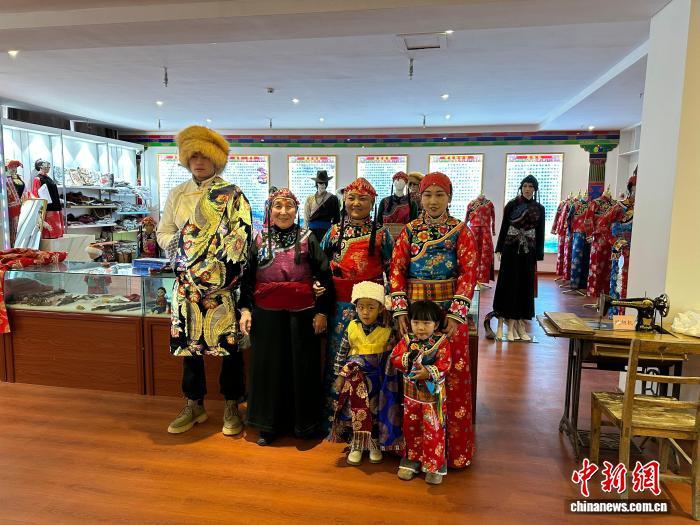 在殷保朝的服飾展廳里,數(shù)十套適配男女老幼不同年齡段的精美服飾令人看得眼花繚亂,藍(lán)天配綠地的服飾主搭色調(diào)掩映著天人合一的審美。一大批承載“三格毛”服飾文化的布偶和掛件伴手等文創(chuàng)新品,也成為年輕人愛不釋手的新寵。