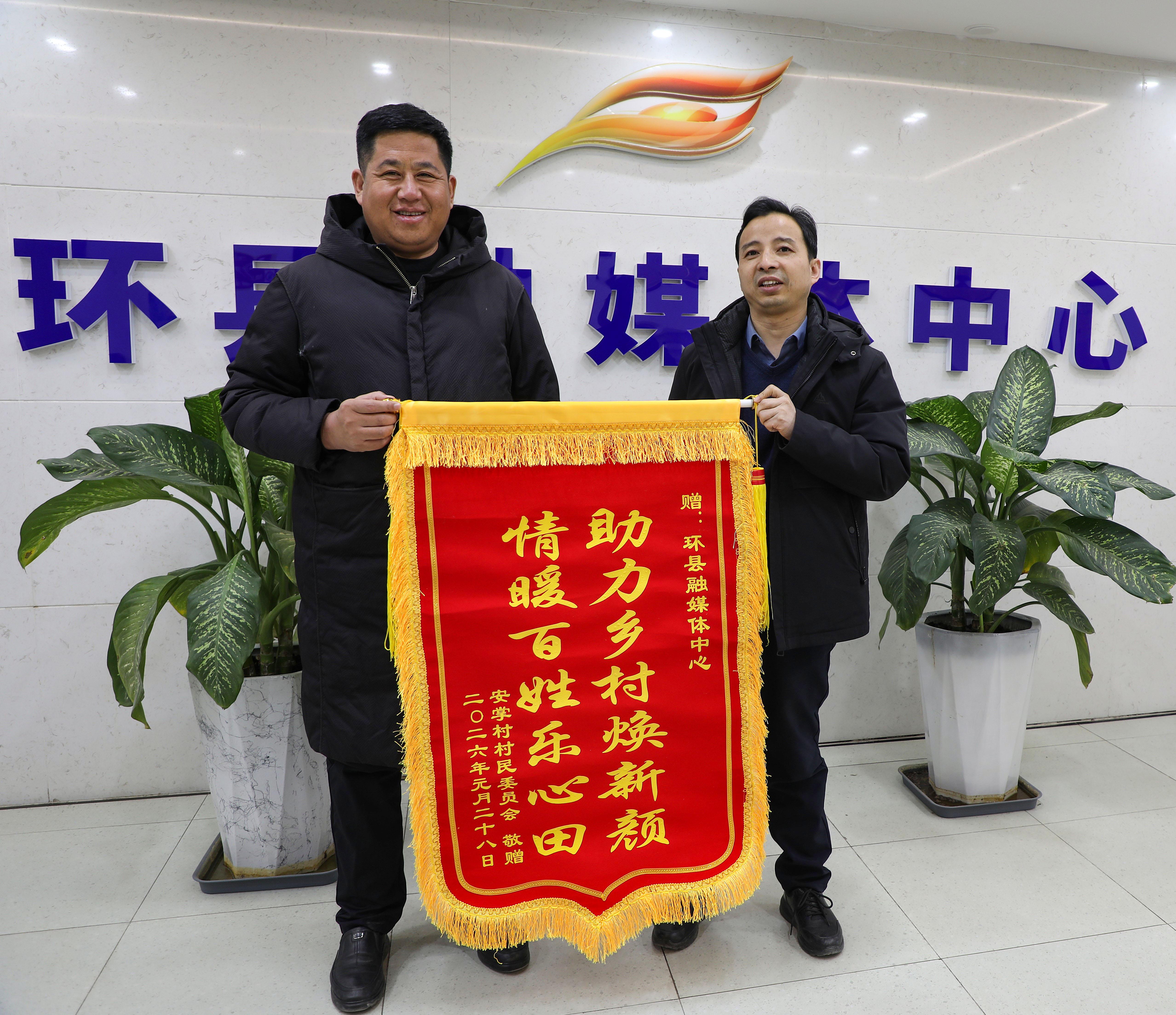 年關(guān)將近,暖意融融。2月13日,環(huán)縣車道鎮(zhèn)安掌村黨支部書記張成珠專程來到環(huán)縣融媒體中心,將一面印有“情系百姓樂心田 助力鄉(xiāng)村煥新顏”的錦旗送到中心負(fù)責(zé)人手中,以最質(zhì)樸的方式,感謝融媒體中心一年來對安掌村各項工作的宣傳報道與輿論支持。