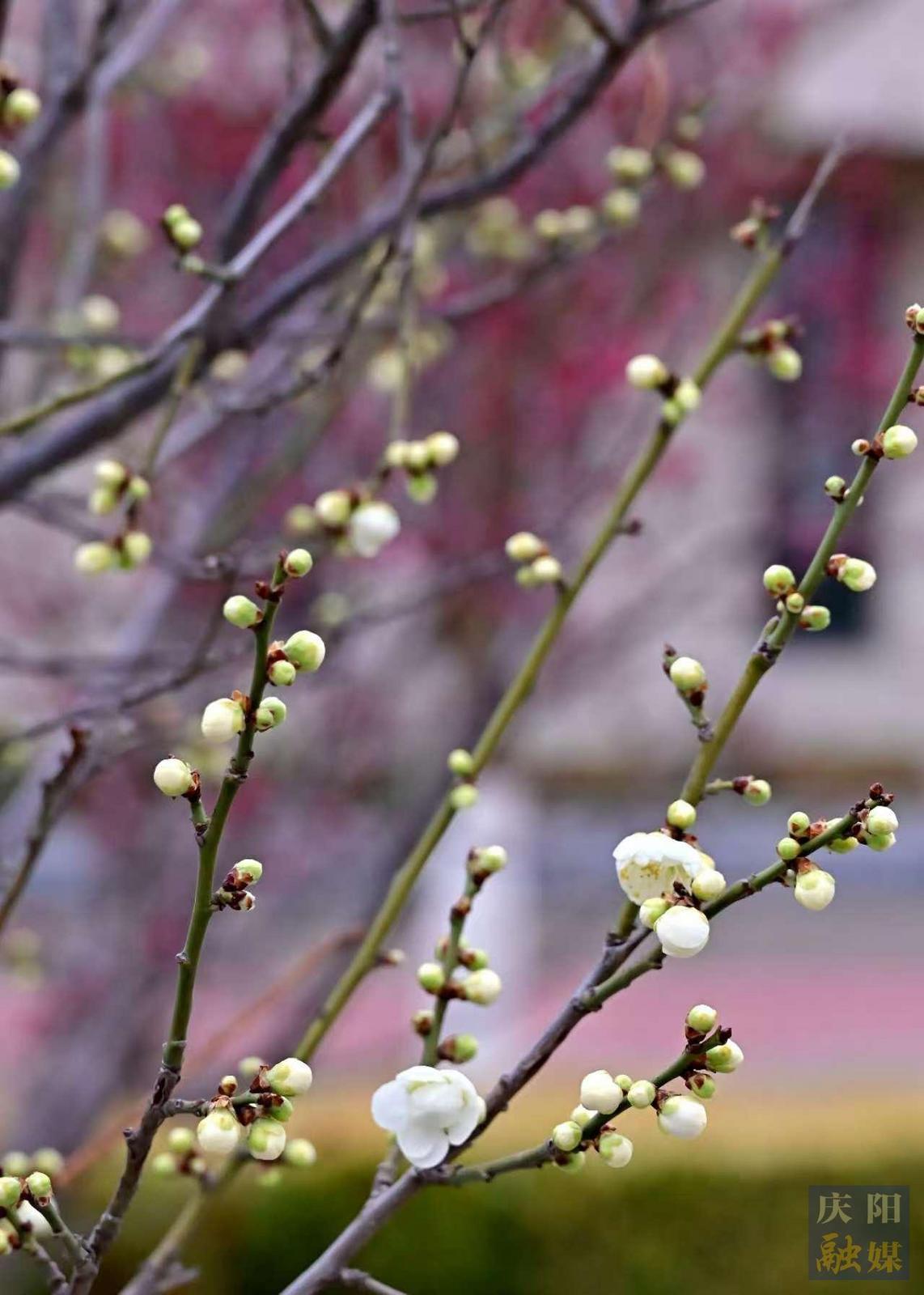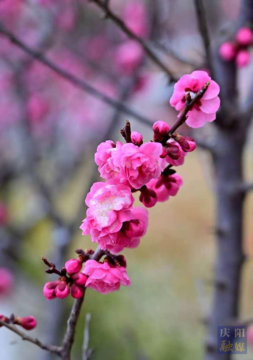 慶陽網(wǎng)訊(通訊員 王文正)3月28日,西峰區(qū)人防廣場(chǎng)花壇內(nèi),數(shù)十株梅花迎春綻放。粉紅花瓣綴滿枝頭,或疏影橫斜,或簇?fù)沓蓤F(tuán),在微風(fēng)中輕輕搖曳。梅花的柔美與周邊現(xiàn)代樓宇的剛勁線條相映成趣,為城市增添了一抹靈動(dòng)春意。不少市民駐足觀賞,拍照留念,感受早春氣息。