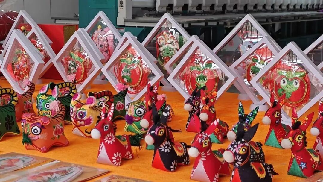 董利紅的丈夫、公司總經(jīng)理賈紅東則在繡花機旁專注趕制“馬年大吉”系列訂單,不時俯身剪除線頭,動作嫻熟而從容。