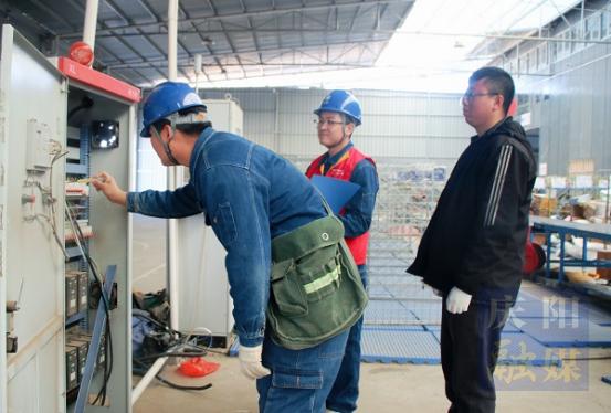 慶陽網(wǎng)訊(通訊員 高靚)2月25日,國網(wǎng)慶陽供電公司工作人員主動走進慶陽市合水縣隴象集團,以精準對接、主動服務(wù)為抓手,詳細了解企業(yè)節(jié)后開工用電需求,為生產(chǎn)用電設(shè)備開展全面細致的“健康體檢”,以可靠電力保障企業(yè)跑出復工復產(chǎn)“加速度”。