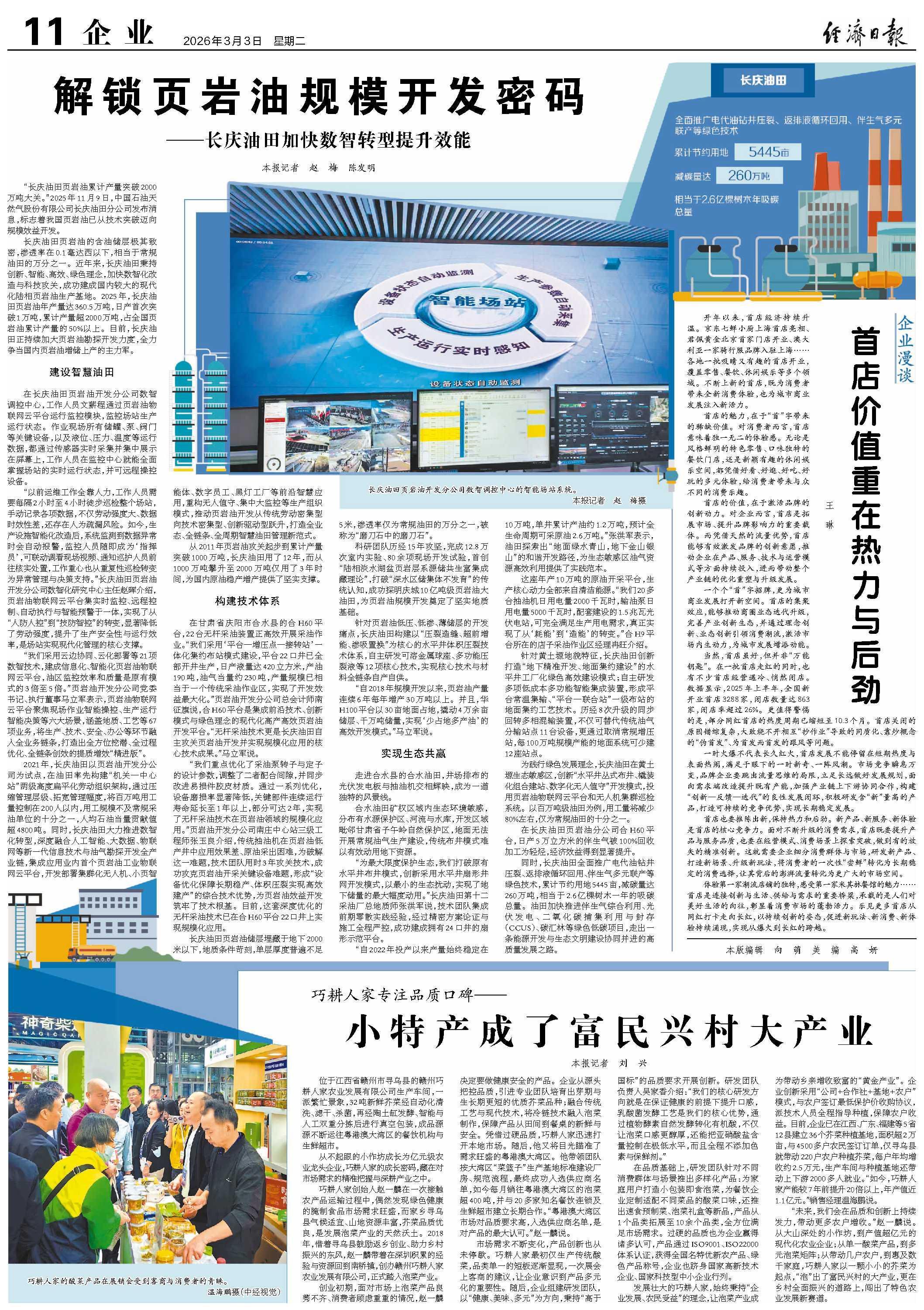 2021年,長慶油田以頁巖油開發(fā)分公司為試點,在油田率先構(gòu)建“機關(guān)—中心站”兩級高度扁平化勞動組織架構(gòu),通過壓縮管理層級、拓寬管理幅度,將百萬噸用工量控制在200人以內(nèi),用工規(guī)模不及常規(guī)采油單位的十分之一,人均石油當(dāng)量貢獻值超4800噸。同時,長慶油田大力推進數(shù)智化轉(zhuǎn)型,深度融合人工智能、大數(shù)據(jù)、物聯(lián)網(wǎng)等新一代信息技術(shù)與油氣勘探開發(fā)全產(chǎn)業(yè)鏈,集成應(yīng)用業(yè)內(nèi)首個頁巖油工業(yè)物聯(lián)網(wǎng)云平臺,開發(fā)部署集群化無人機、小頁智能體、數(shù)字員工、黑燈工廠等前沿智慧應(yīng)用,重構(gòu)無人值守、集中大監(jiān)控等生產(chǎn)組織模式,推動頁巖油開發(fā)從傳統(tǒng)勞動密集型向技術(shù)密集型、創(chuàng)新驅(qū)動型躍升,打造全業(yè)態(tài)、全鏈條、全周期智慧油田管理新范式。